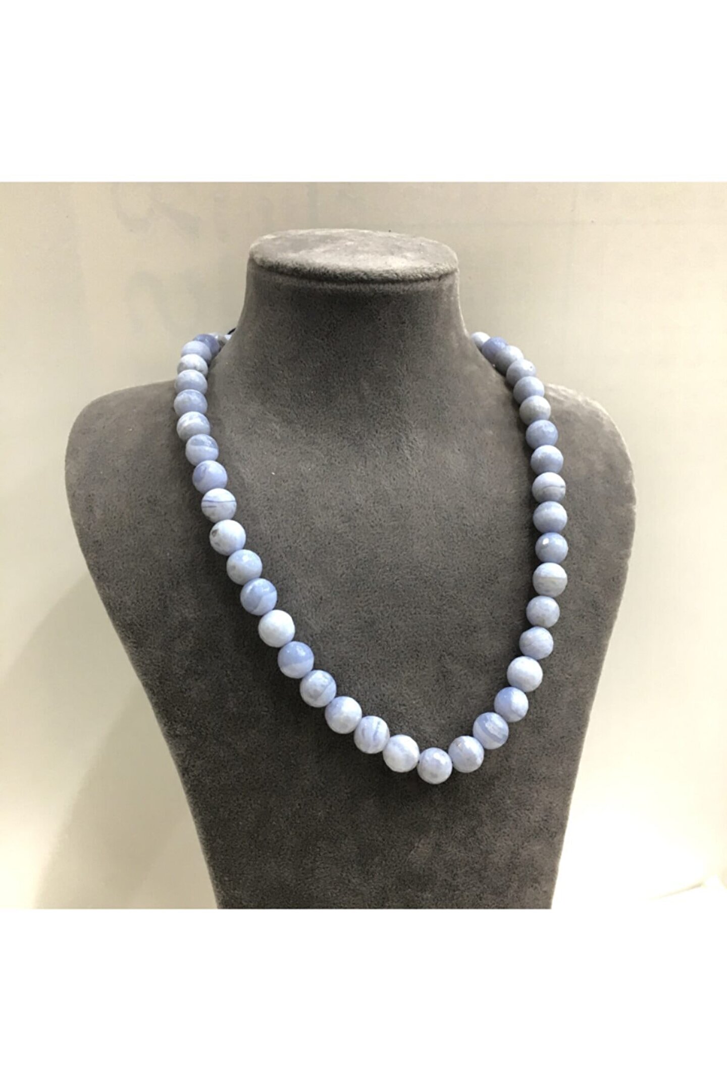 Kadın 925 Ayar Gümüş Klipsli 1.sınıf Doğal Kalsedon Taşlı Kolye Hsg0930