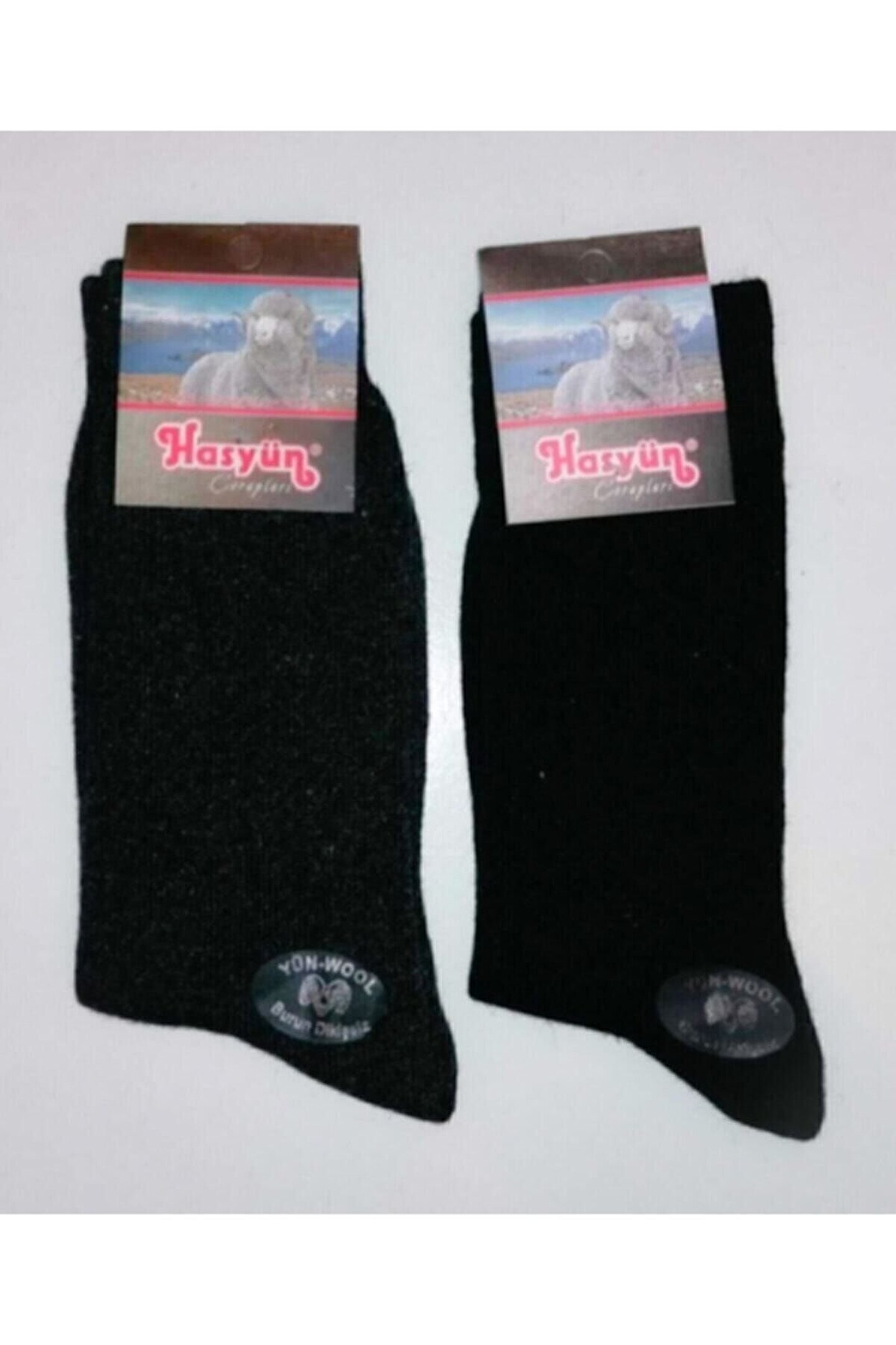 2li Yün Çorap Gerçek Yün Hakiki Sıcaklık Gri-kahverengi-lacivert-füme Renk Seçenekleri Ile