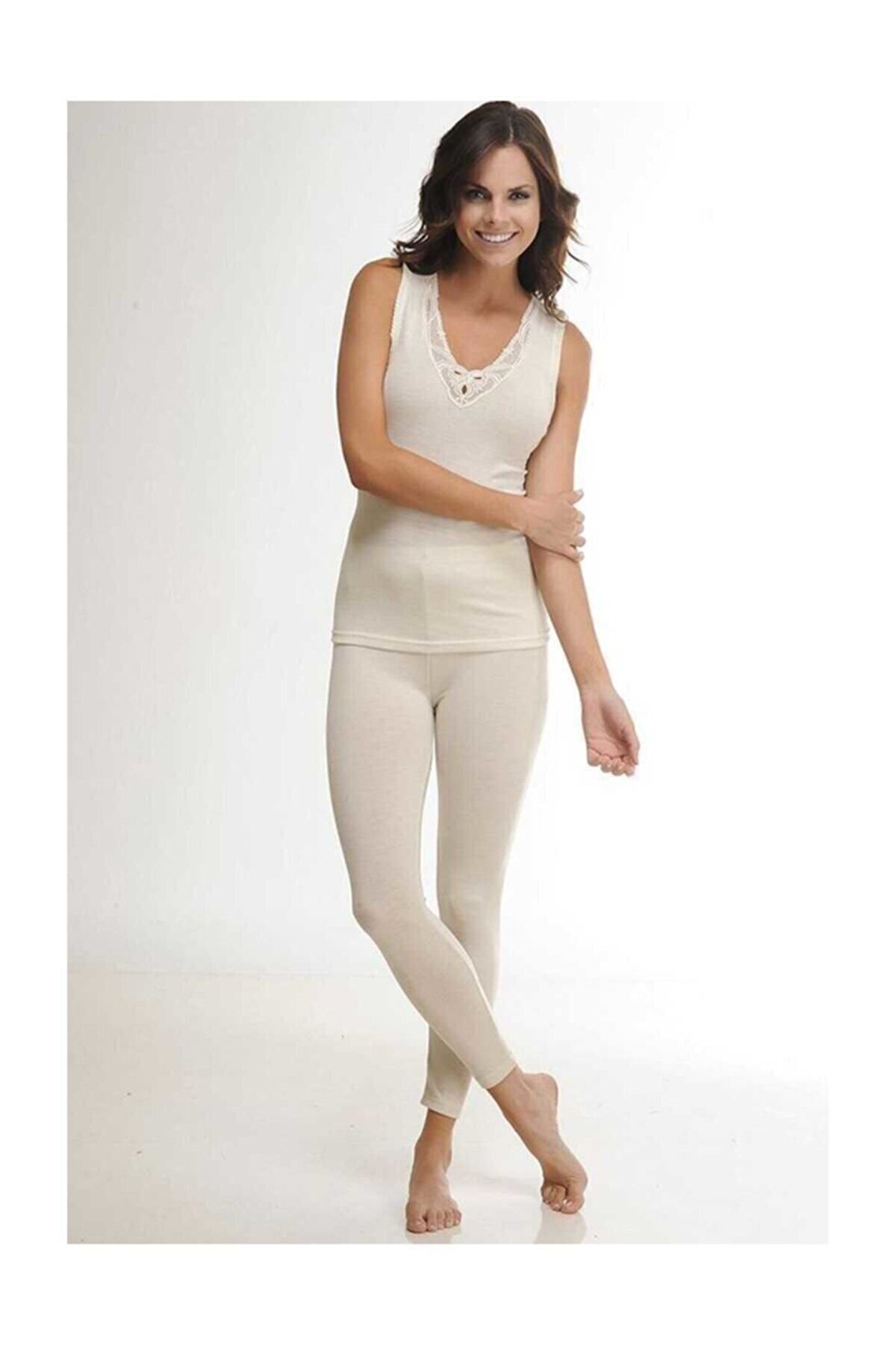 4010-kadın Krem Yün Likralı Uzun Tayt Elf568hasuzntytccm