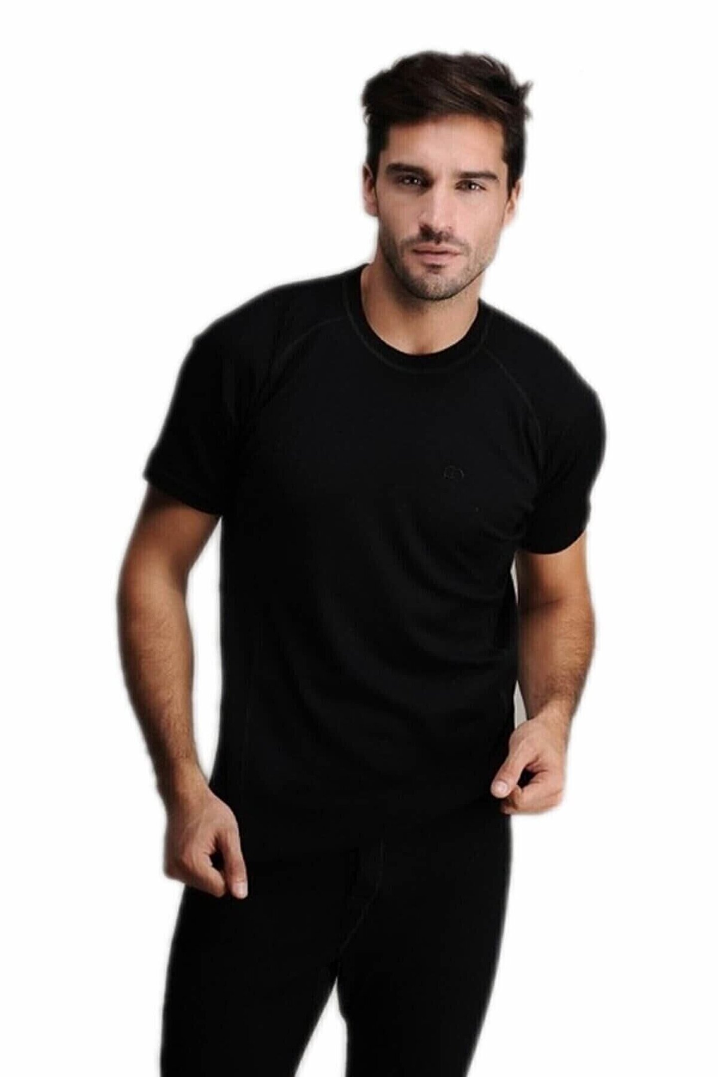 7215 Erkek Siyah Yün Kısa Kol Fanila