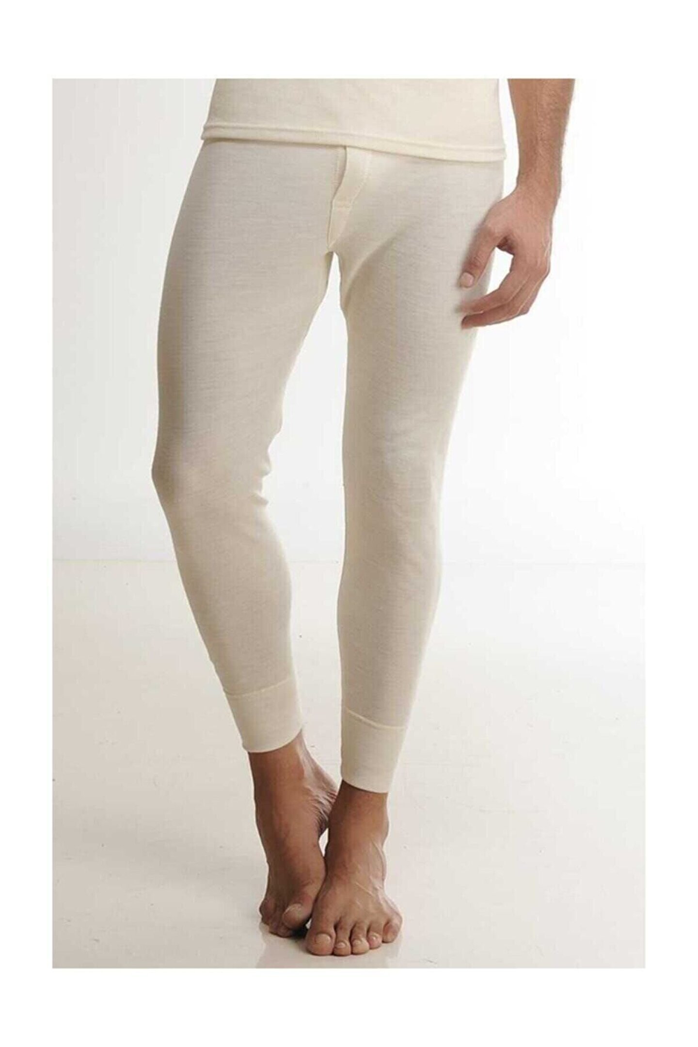 Erkek Krem Yün Uzun Tayt
