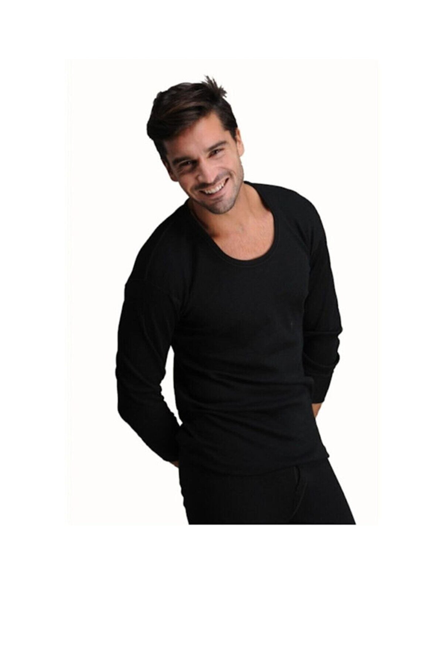 Erkek Siyah Exstra Yumuşak Yün Uzun Kollu Fanila