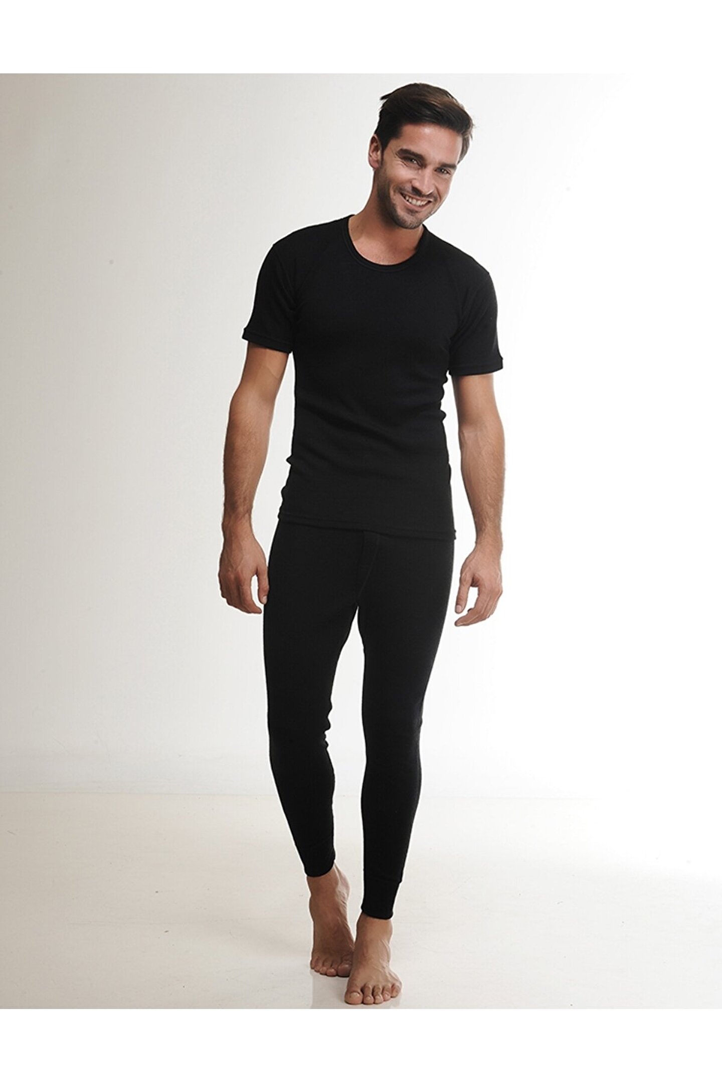 Erkek Siyah Kısa Kollu Yün Fanila
