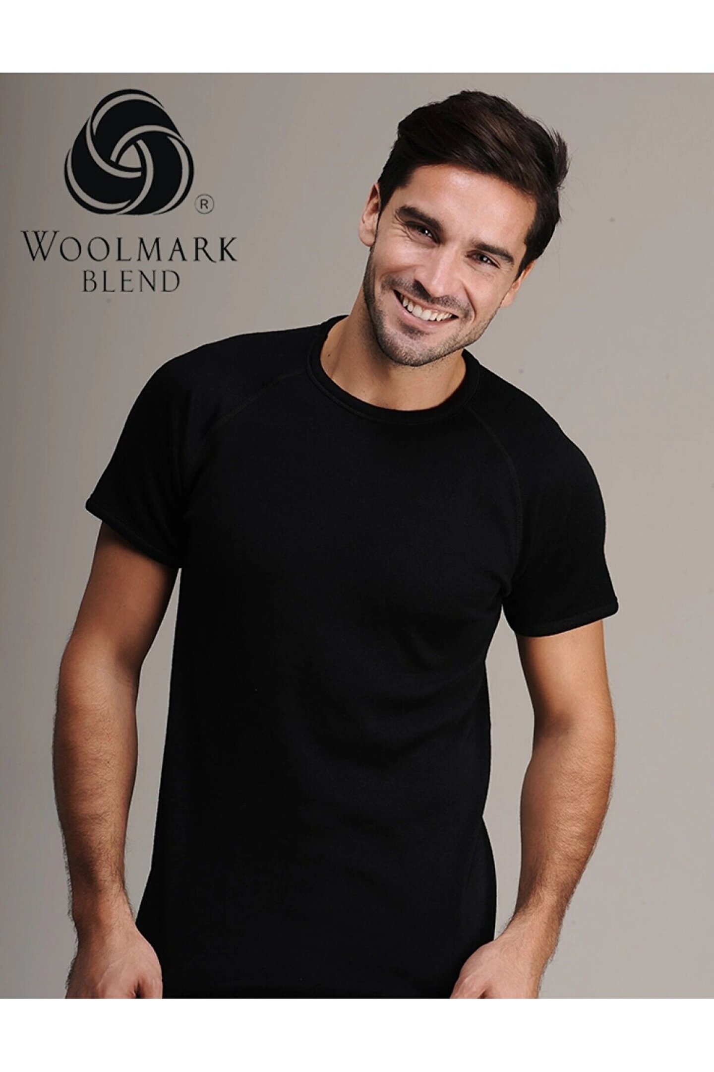 Siyah Renk Kısa Kol Yün Fanila