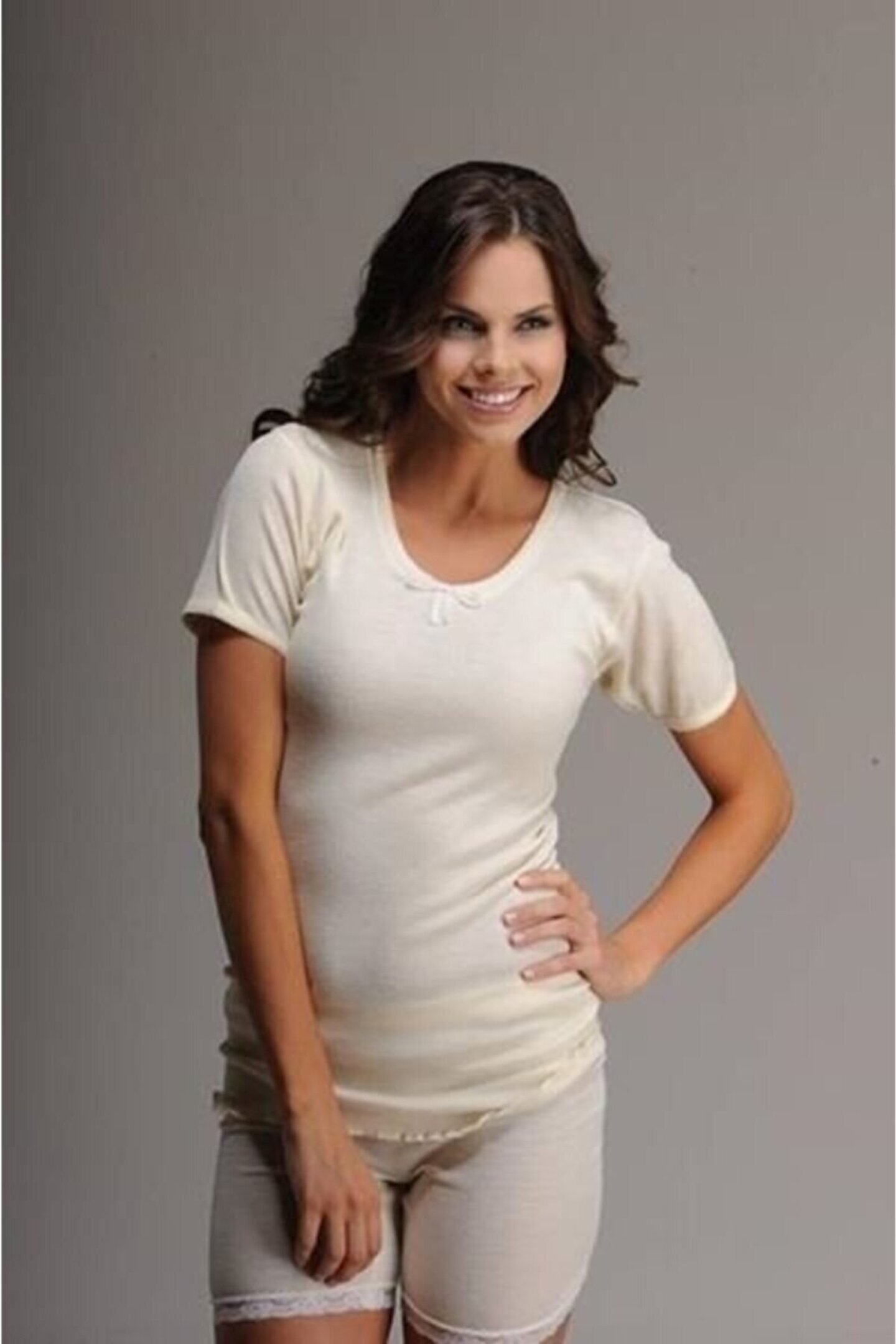 Kadın Kaşkorse Yün Kısa Kol Fanila Ekru