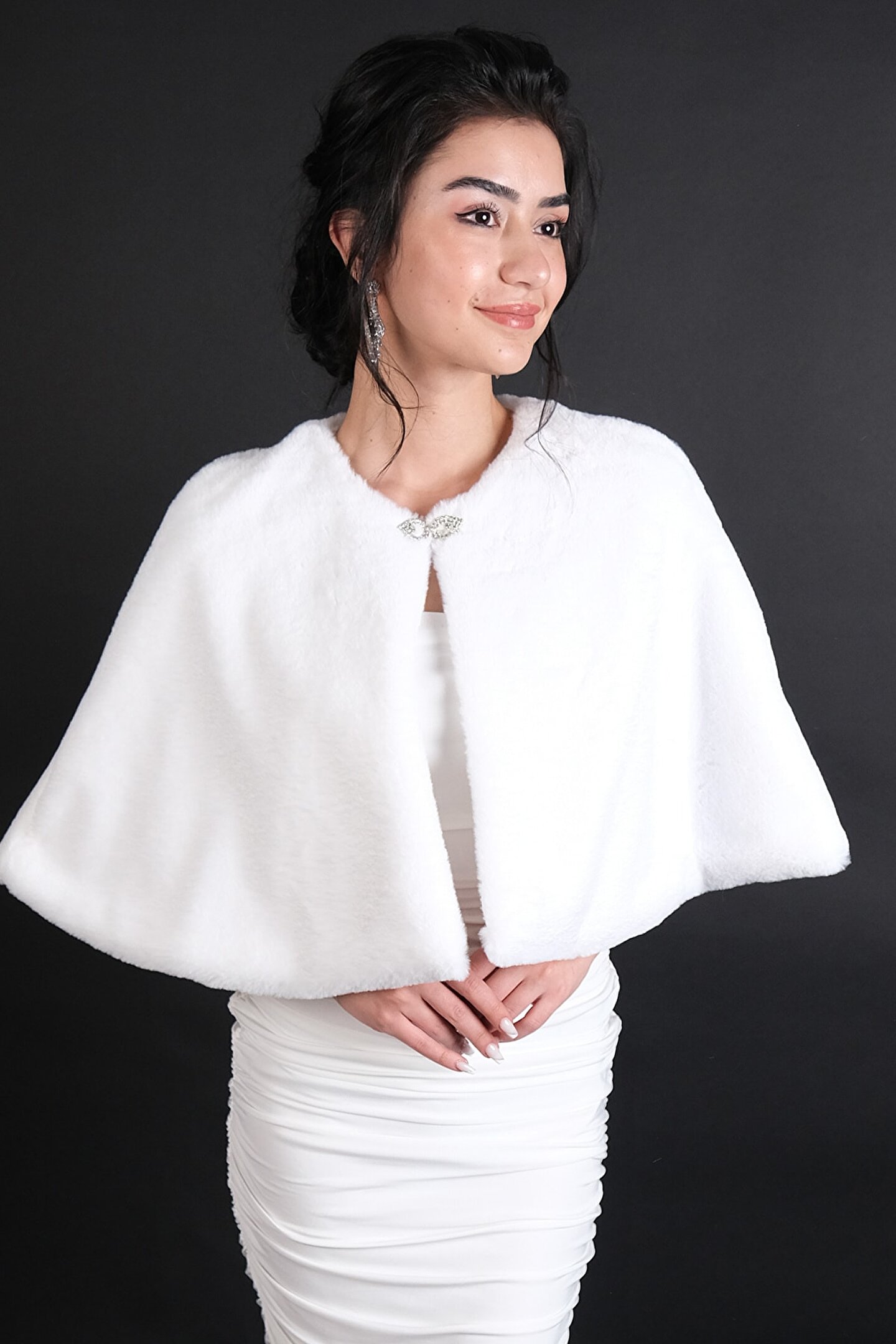 Beyaz Etol Gelin Bolero Broşlu Gelin Kürkü