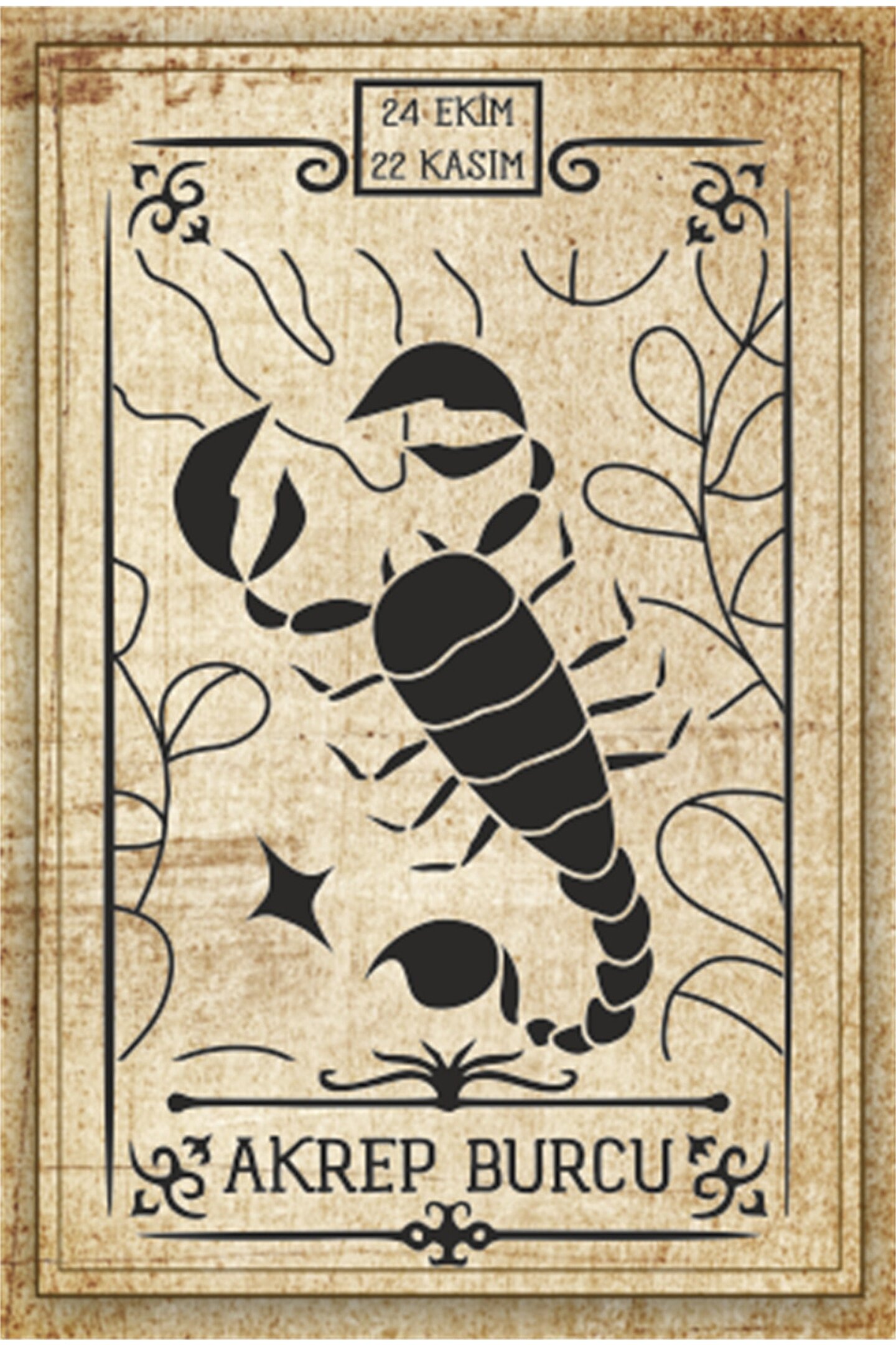 Hayat Poster Akrep Burcu Astroloji Burç Retro Ahşap Poster
