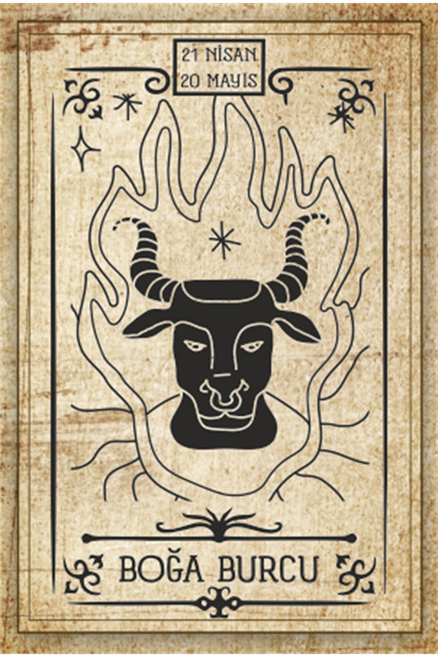 Hayat Poster Boğa Burcu Astroloji Burç Retro Ahşap Poster