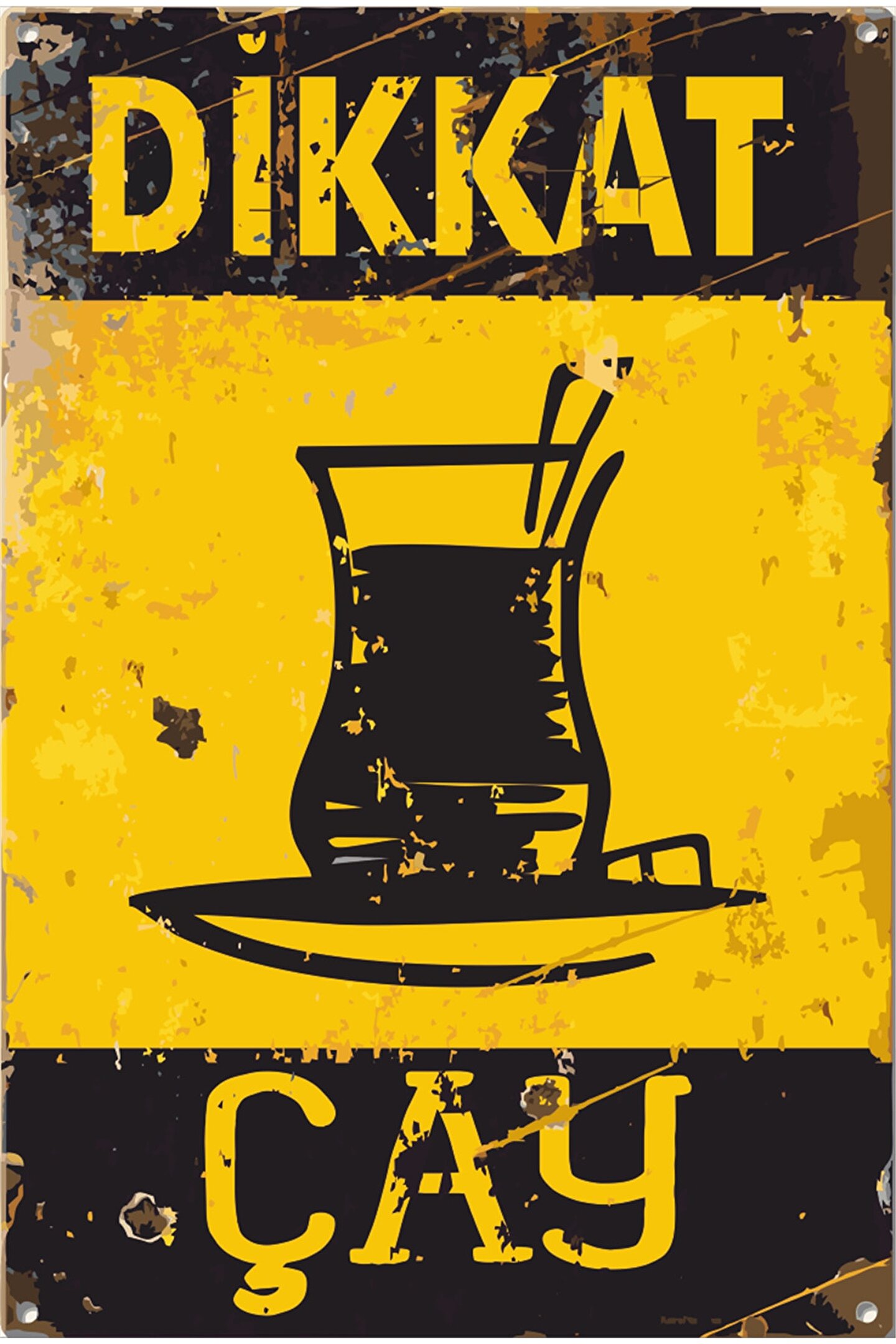 Hayat Poster Dikkat Çay Uyarı Levhası Retro Ahşap Poster