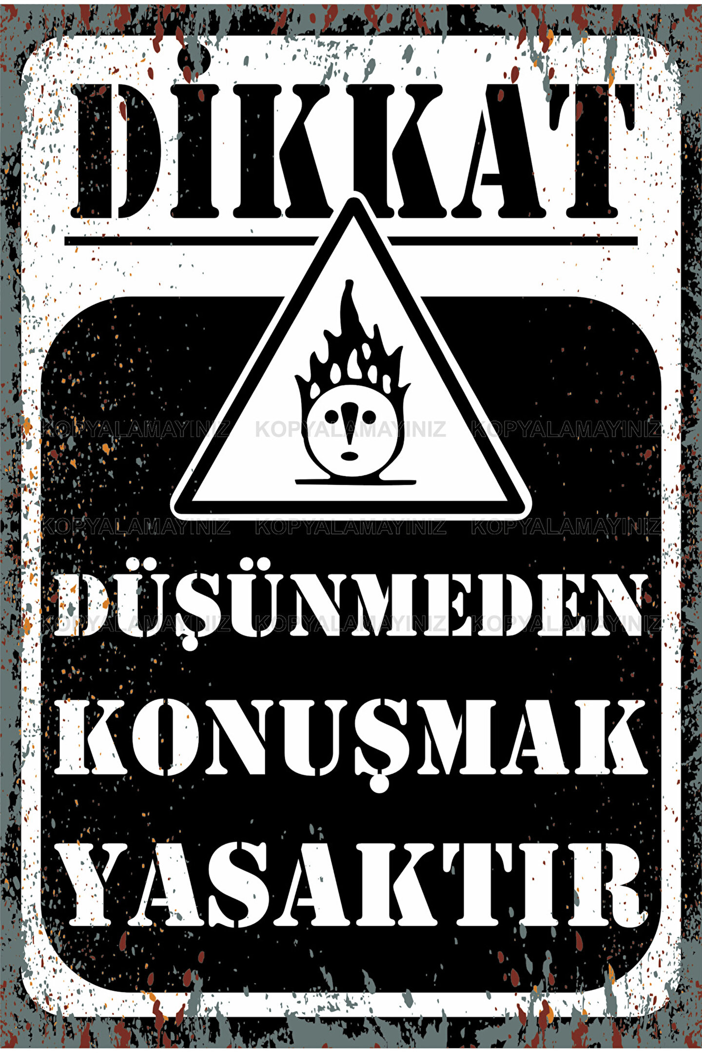 - Düşünmeden konuşmanın tehlikelerini hatırlatan bu komik poster, evinizin veya ofisinizin duvarında eğlenceli bir dokunuş katıyor.- Retro tasarımıyla dikkat çeken bu poster, nostaljik bir atmosfer yaratırken aynı zamanda modern dekorasyonun vazgeçilmez bir parçası haline geliyor.- Dayanıklı MDF malzemesi sayesinde uzun süreli kullanım sunan bu ürün, kalitesiyle ön plana çıkıyor.- Çerçevesiz yapısı ile kolayca asılabilen ve istediğiniz herhangi bir alana rahatlıkla uyum sağlayan tasarım avantajına sahip.- Tek parça halinde gelen bu poster, minimalist estetiği benimseyenler için ideal bir seçim olup, mekanınıza şıklık katıyor.
