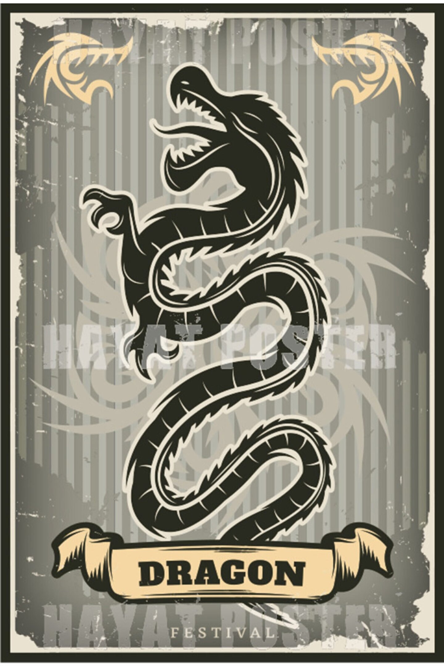 Hayat Poster Dragon Ejderha Retro Vintage Ahşap Poster