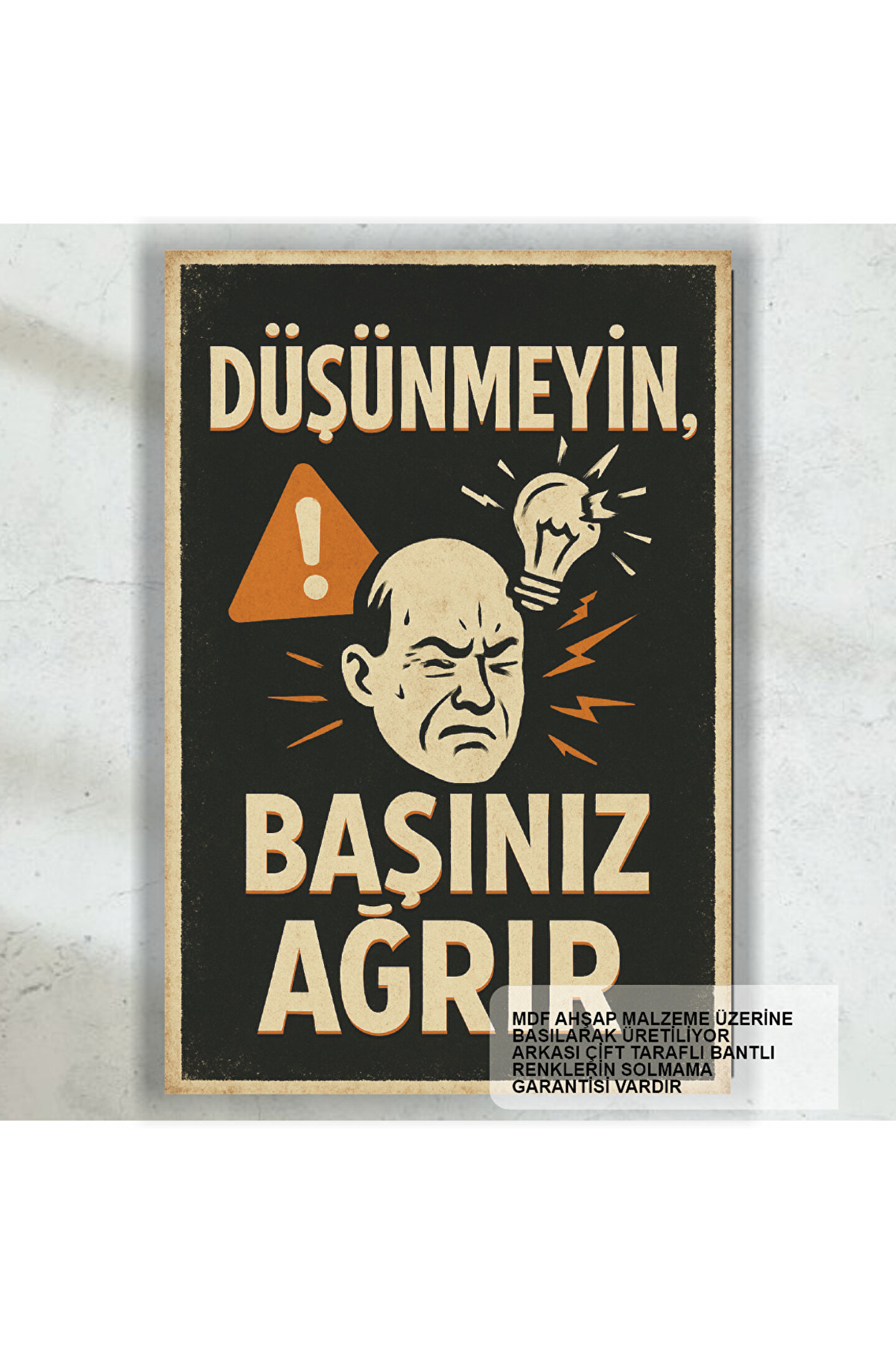 - Retro tasarımıyla dikkat çeken bu ahşap poster, evinizin veya ofisinizin atmosferini nostaljik bir dokunuşla zenginleştirir.; - Tek parça halinde gelen bu ürün, kolay montaj avantajı sunarak zaman kazandırır ve ekstra çerçeve ihtiyacını ortadan kaldırır.; - Yüksek kaliteli MDF malzemesinden üretilmiş olup, uzun ömürlü kullanım vaat ederken aynı zamanda dayanıklılığı ile ön plana çıkar.; - Türkiye'de üretilen bu poster, yerel kaynakların desteklenmesine katkıda bulunurken aynı zamanda kalite standartlarına uygunluğu garanti eder.; - Çerçevesiz yapısı sayesinde duvara zarif bir şekilde asılabilir; hem modern hem de klasik dekorasyon stilleriyle uyum sağlar.