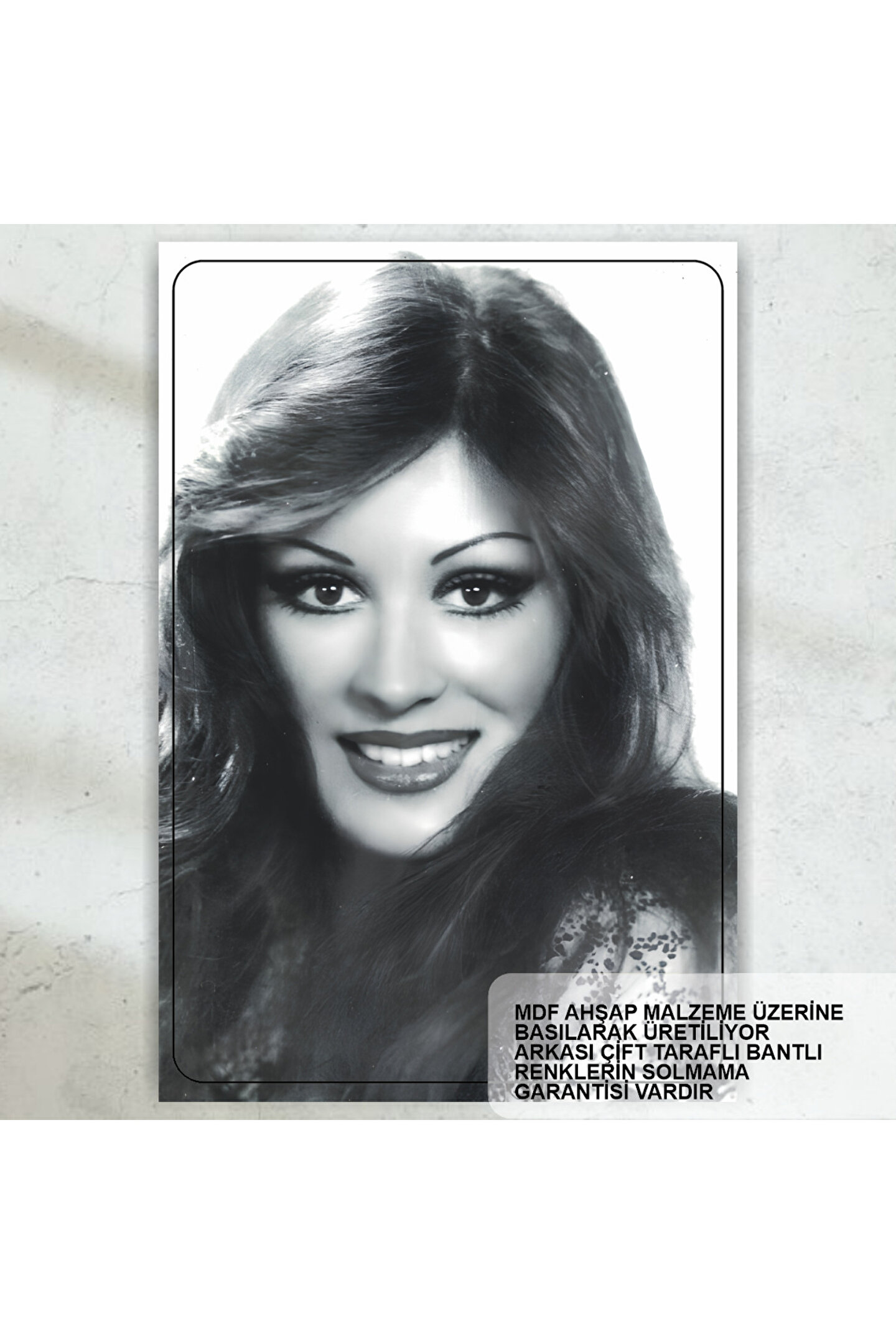 - Gülşen Bubikoğlu'nun Yeşilçam Türk Sineması temalı bu retro ahşap poster, nostaljik bir atmosfer sunar.; - Yüksek kaliteli MDF malzemeden üretilmiş olup, dayanıklılığı ve estetik görünümü ile dikkat çeker.; - Tek parça halinde gelen bu ürün, kolay montaj avantajı sağlar ve duvarlarınıza şık bir dokunuş ekler.; - Çerçevesiz tasarımı sayesinde duvarınızda minimum kesinti ile sergilenir ve mekanınıza modern bir hava katar.