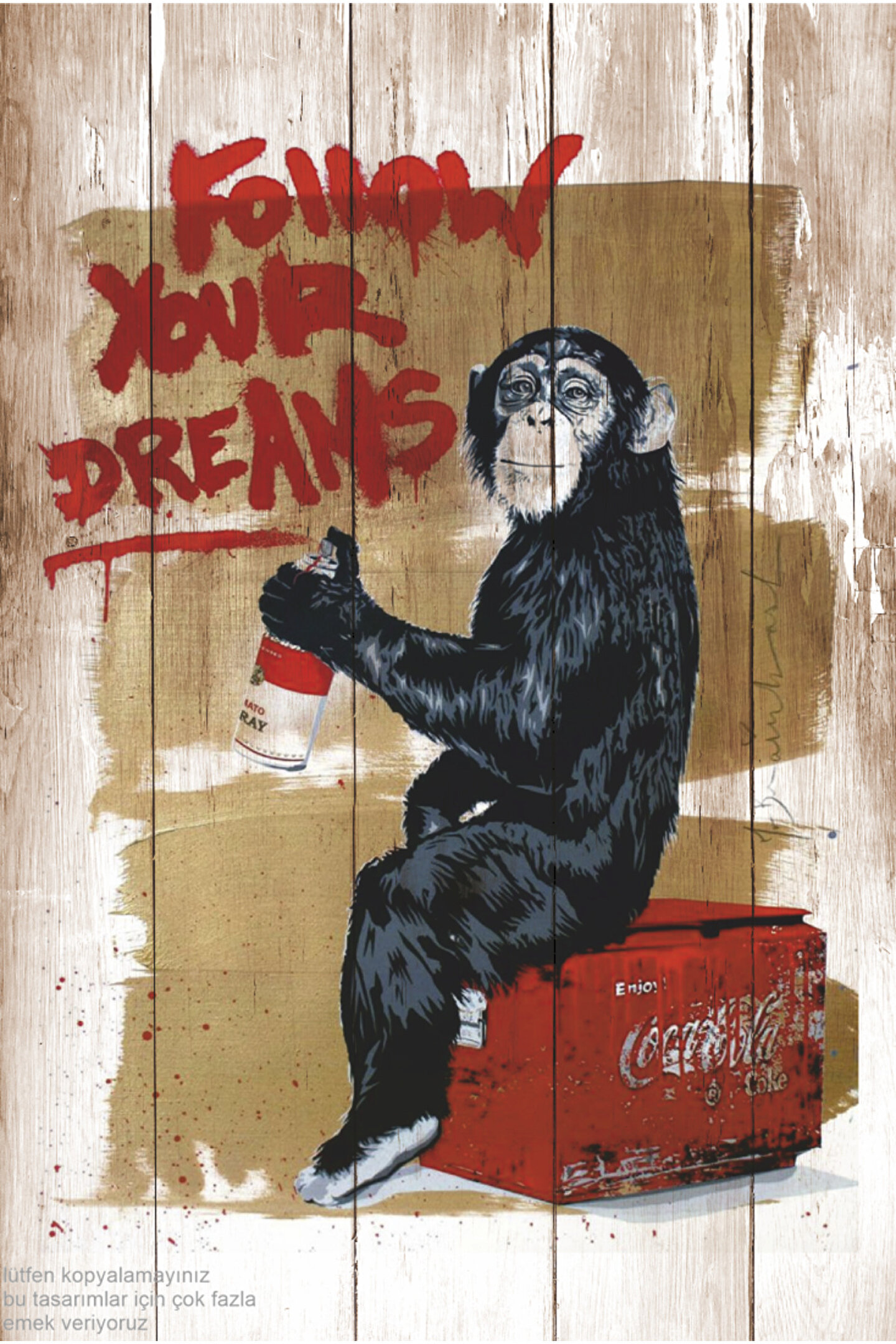 Hayat Poster hayallerinin peşinden git diyen komik maymun eğlenceli estetik dekor tablo retro ahşap poster