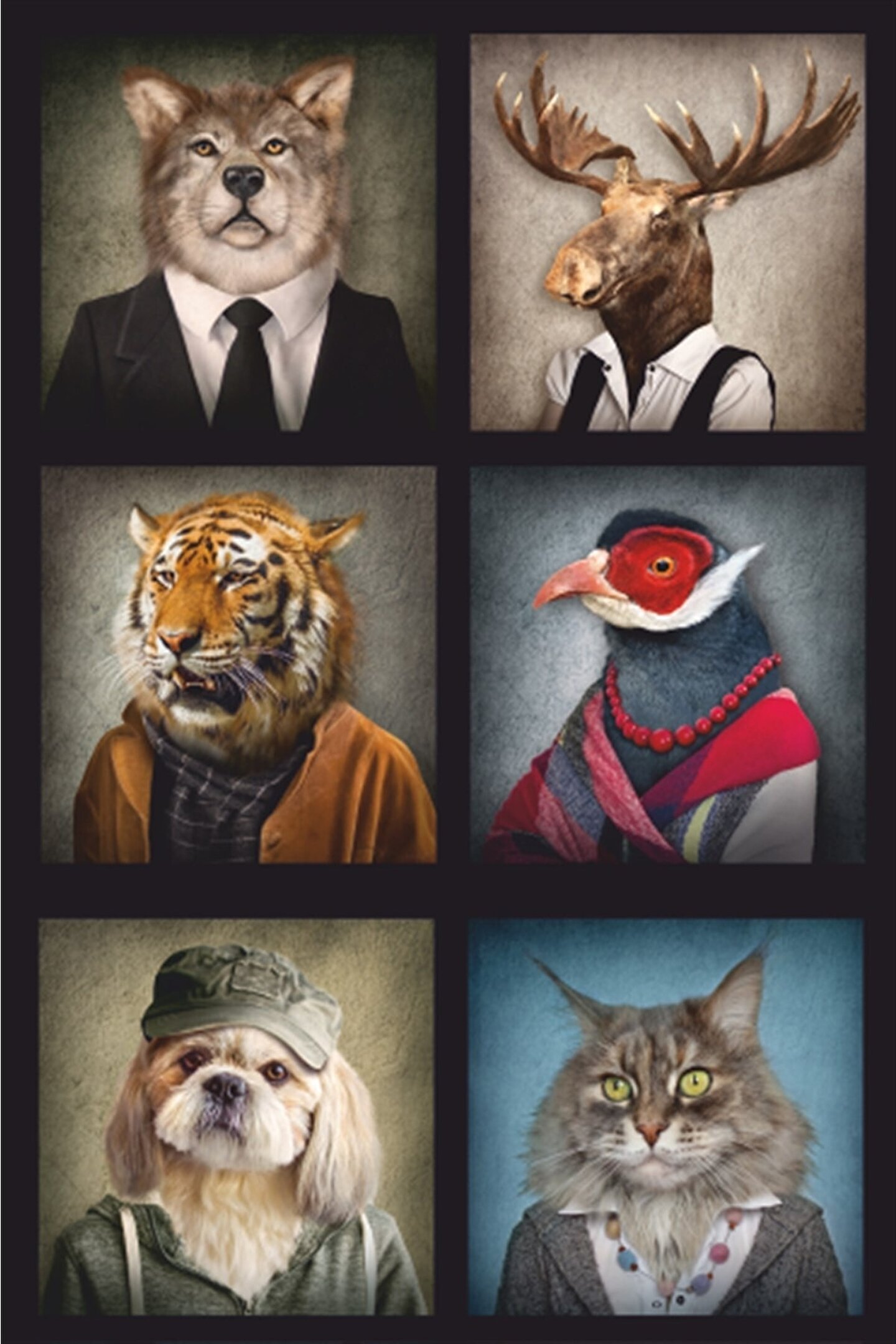 Hayat Poster Hayvan Kafalar Kolaj Retro Ahşap Poster