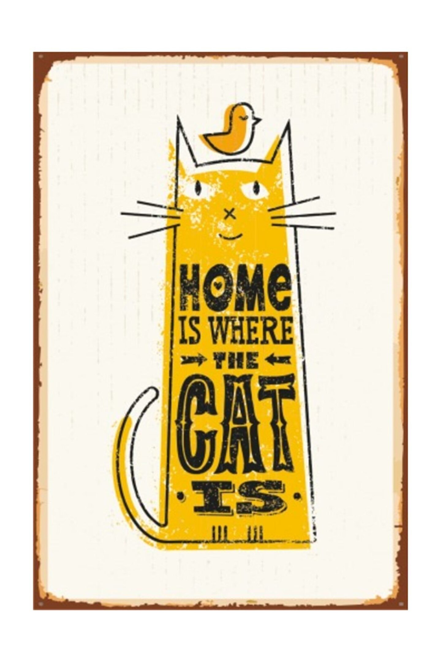 Hayat Poster Kedinin Olduğu Her Yer Evdir (10 Cm X 20 Cm) Mini Retro Ahşap Poster
