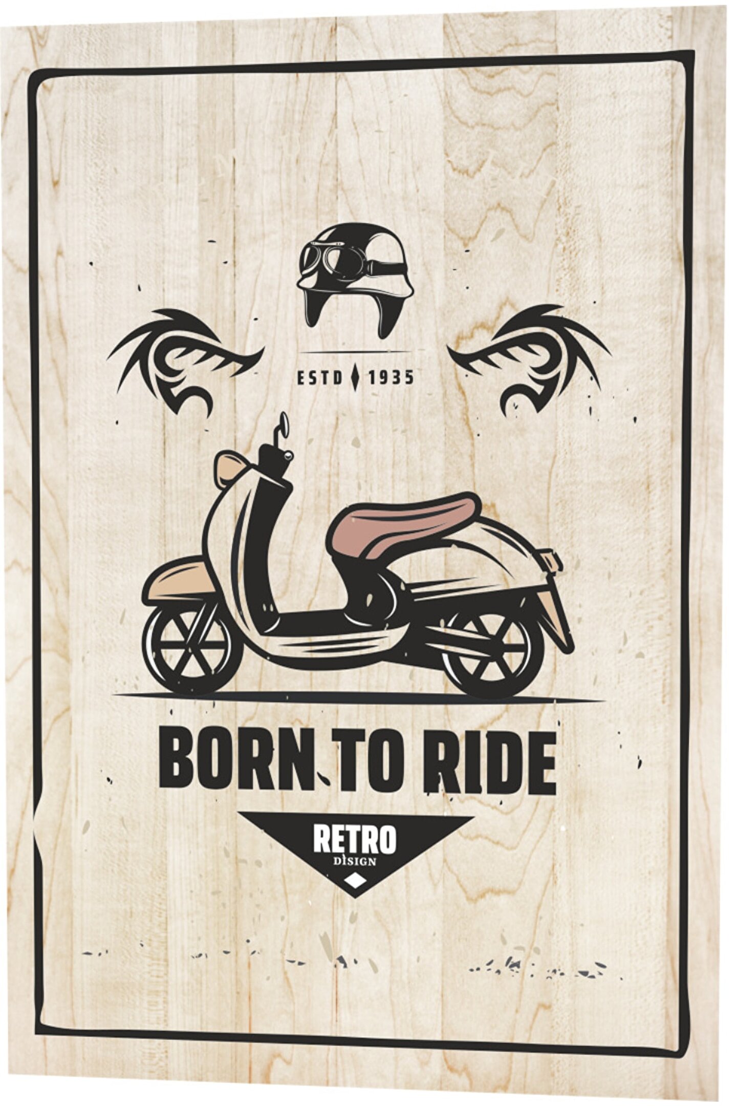 Hayat Poster Klasik Motor Born To Ride Ahşap Desenli Retro Vintage Ahşap Poster