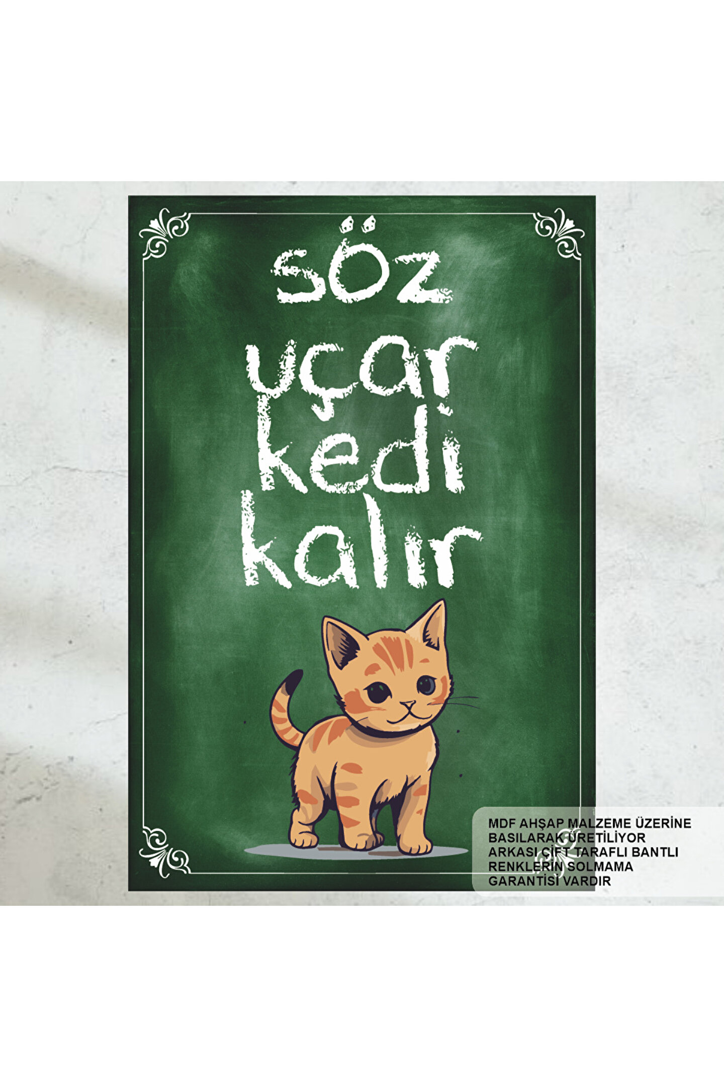 - Retro tasarımıyla dikkat çeken bu komik kedi sözleri ev dekorasyonu, mekanınıza nostaljik bir hava katıyor.; - Ahşap malzemesiyle dayanıklılığı ve sıcak dokunuşu bir arada sunuyor; uzun süreli kullanım için idealdir.; - Tek parça halinde gelen bu poster, kolay montaj avantajı sağlayarak zaman kazandırıyor.; - Çerçevesiz yapısı sayesinde duvarlarınızda daha fazla alan yaratarak kişisel zevkinize göre düzenleyebilirsiniz.; - Üreticinin Türkiye'den geldiği bilgisiyle yerel sanatçıların eserlerini desteklemiş olursunuz.