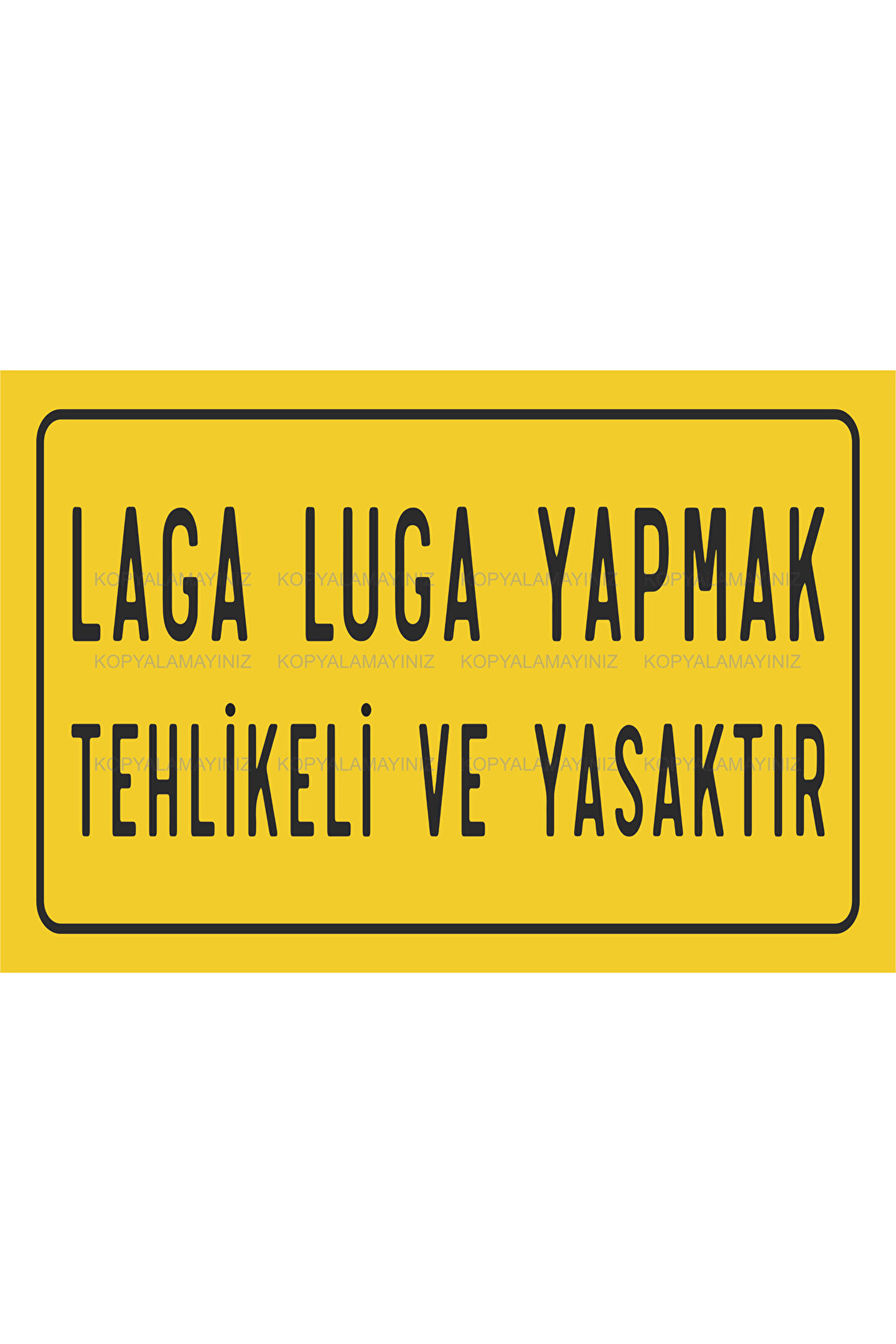 - Retro tarzıyla dikkat çeken bu poster, evinizin veya ofisinizin dekorasyonuna nostaljik bir dokunuş katıyor.- Çerçevesiz tasarımı sayesinde kolayca asılabilir ve istediğiniz herhangi bir alanda kullanabilirsiniz.- Dayanıklı MDF malzemeden üretilmiş olup uzun ömürlü kullanım sunar.- Tek parça halinde gelen bu poster, montaj gerektirmez; hemen kullanıma hazır!- "Laga Luga Yapmak Tehlikeli ve Yasaktır" gibi eğlenceli ve esprili mesajlarıyla mekanınıza neşe katarken aynı zamanda düşündürücü bir etki yaratır.