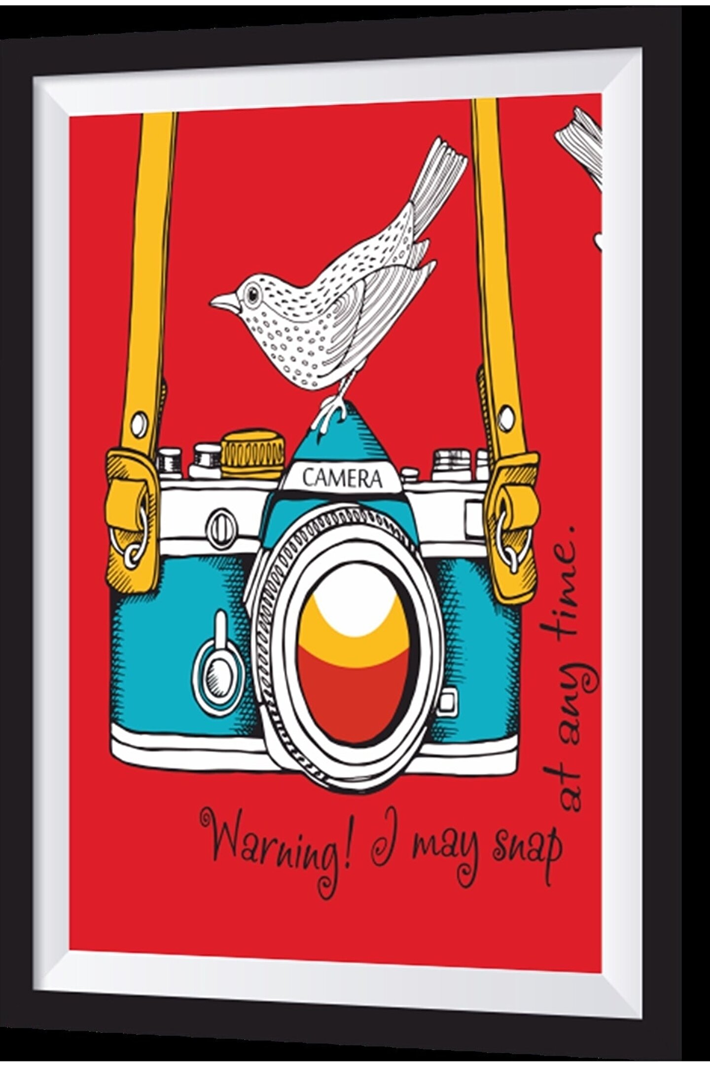 Hayat Poster Mavi Fotoğraf Makinesi Kuş Sanatsal Çerçeve Görünümlü Ahşap Tablo