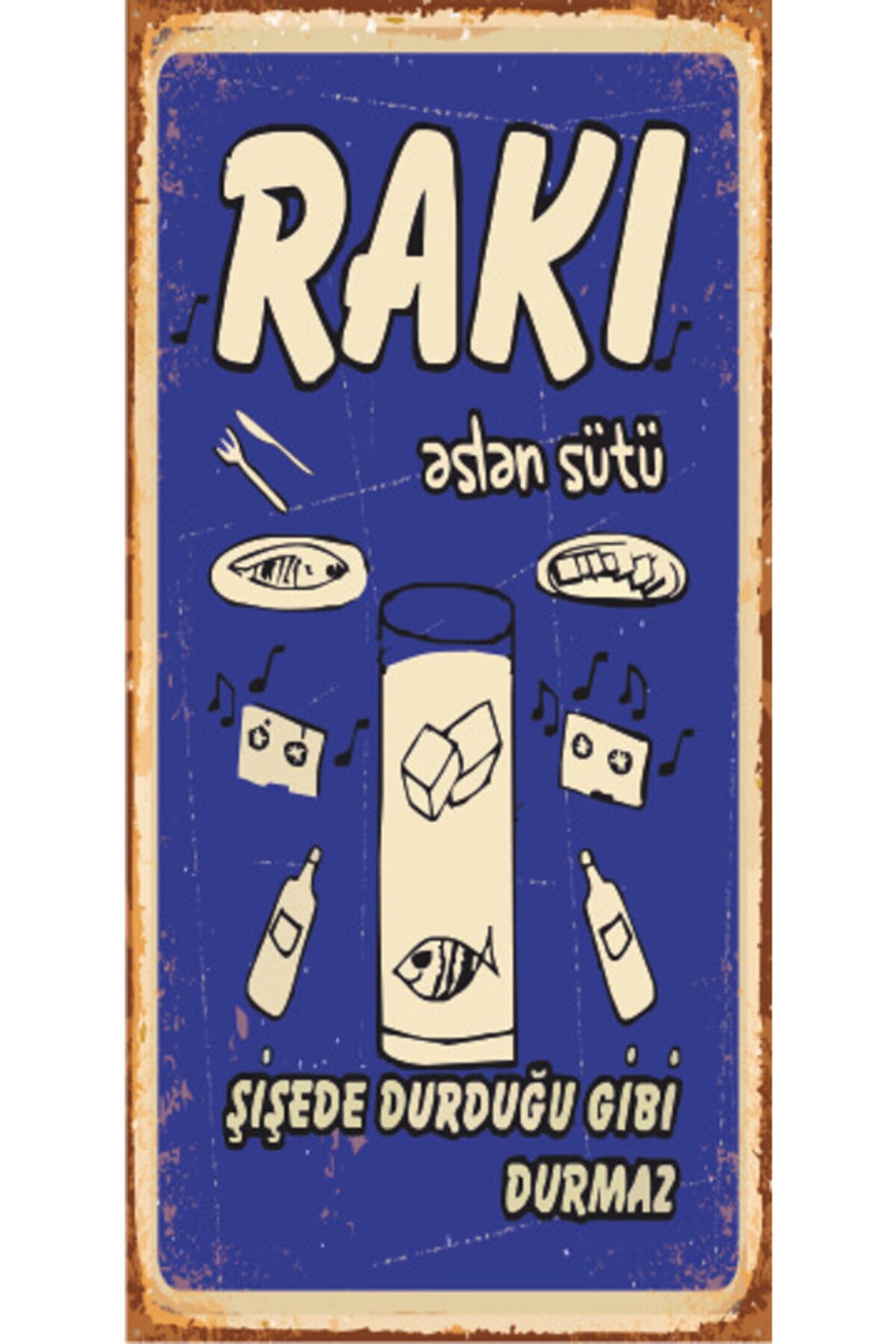 Hayat Poster Mor Rakı Aslan Sütü Mini Retro Ahşap Poster 10x20 cm