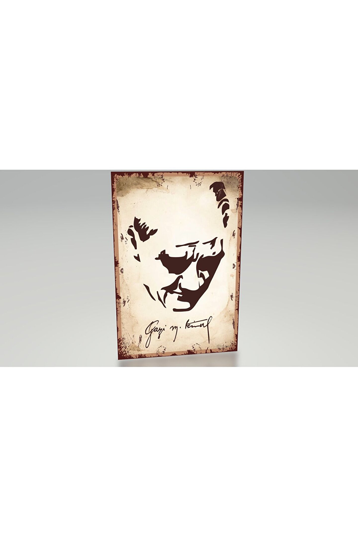 mustafa kemal atatürk imzalı portre silüet tablo retro ahşap poster