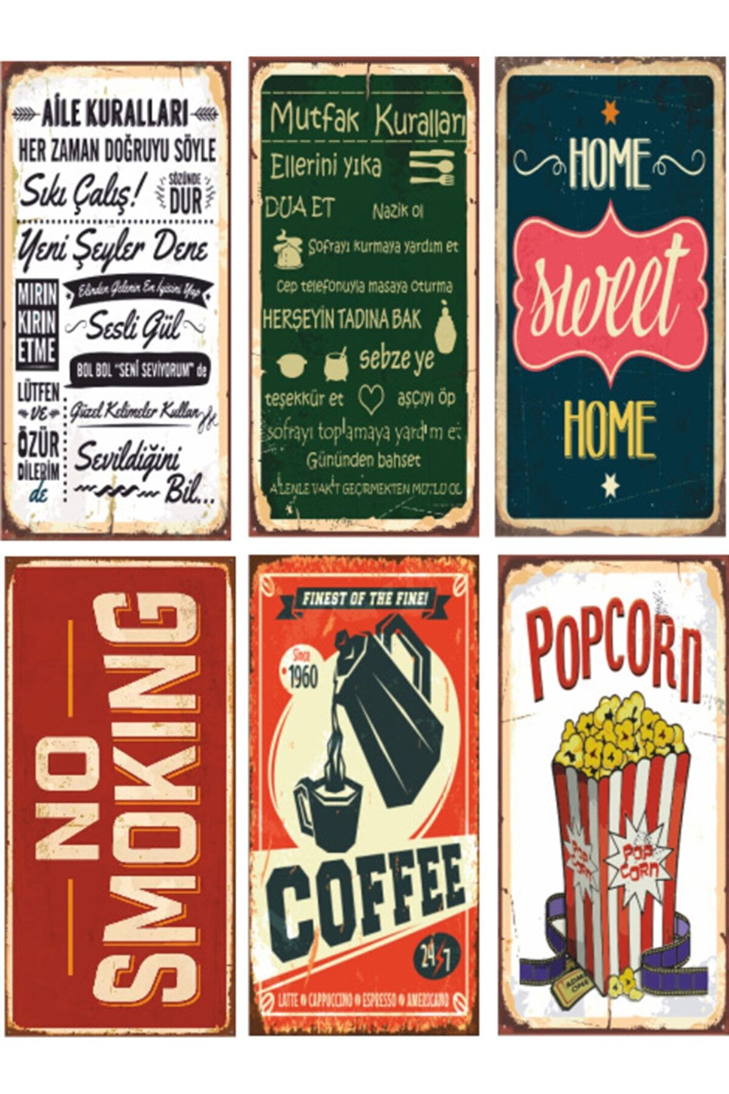 Mutfak Yiyecek Içecek Tamalı 6lı Ahşap Poster Seti