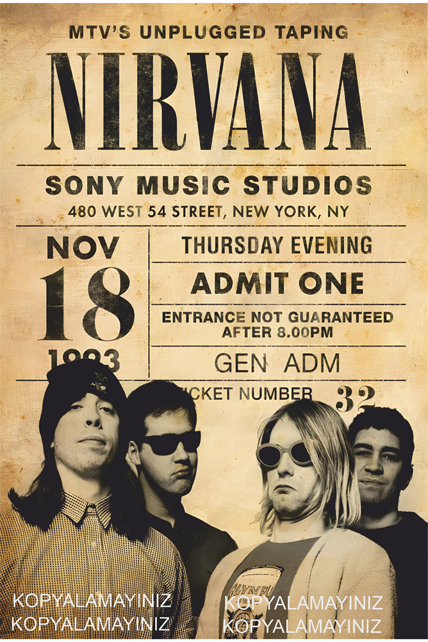 - Nirvana'nın ikonik solisti Kurt Cobain'in yer aldığı rock müzik konser afişi, evinizin duvarlarını süsleyecek retro bir dekorasyon parçası olarak öne çıkıyor.; - MDF materyali sayesinde dayanıklı ve uzun ömürlü kullanım sunar.; - Tek parça halinde gelen bu poster, kolay montaj imkanı sağlar ve ekstra aksesuar gerektirmez.; - Çerçevesiz tasarımı ile modern ve minimalist bir görünüm kazandırırken, duvarınıza kolayca asılabilir.; - Retro temalı stil, nostaljik bir atmosfer yaratırken aynı zamanda müzikseverlerin beğenisine sunulmuştur.; mdf ahşap malzemeye baskı 20x30 cm çift taraflı bantlı