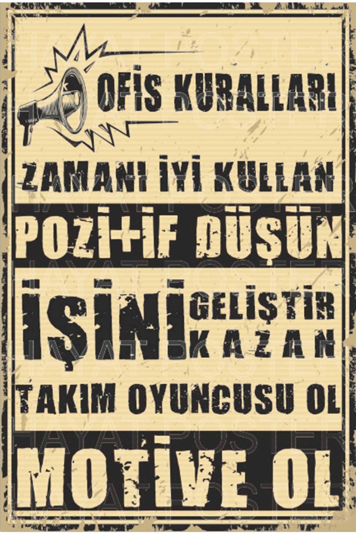Hayat Poster Ofis Işyeri Kuralları Tablosu Retro Vintage Ahşap Poster