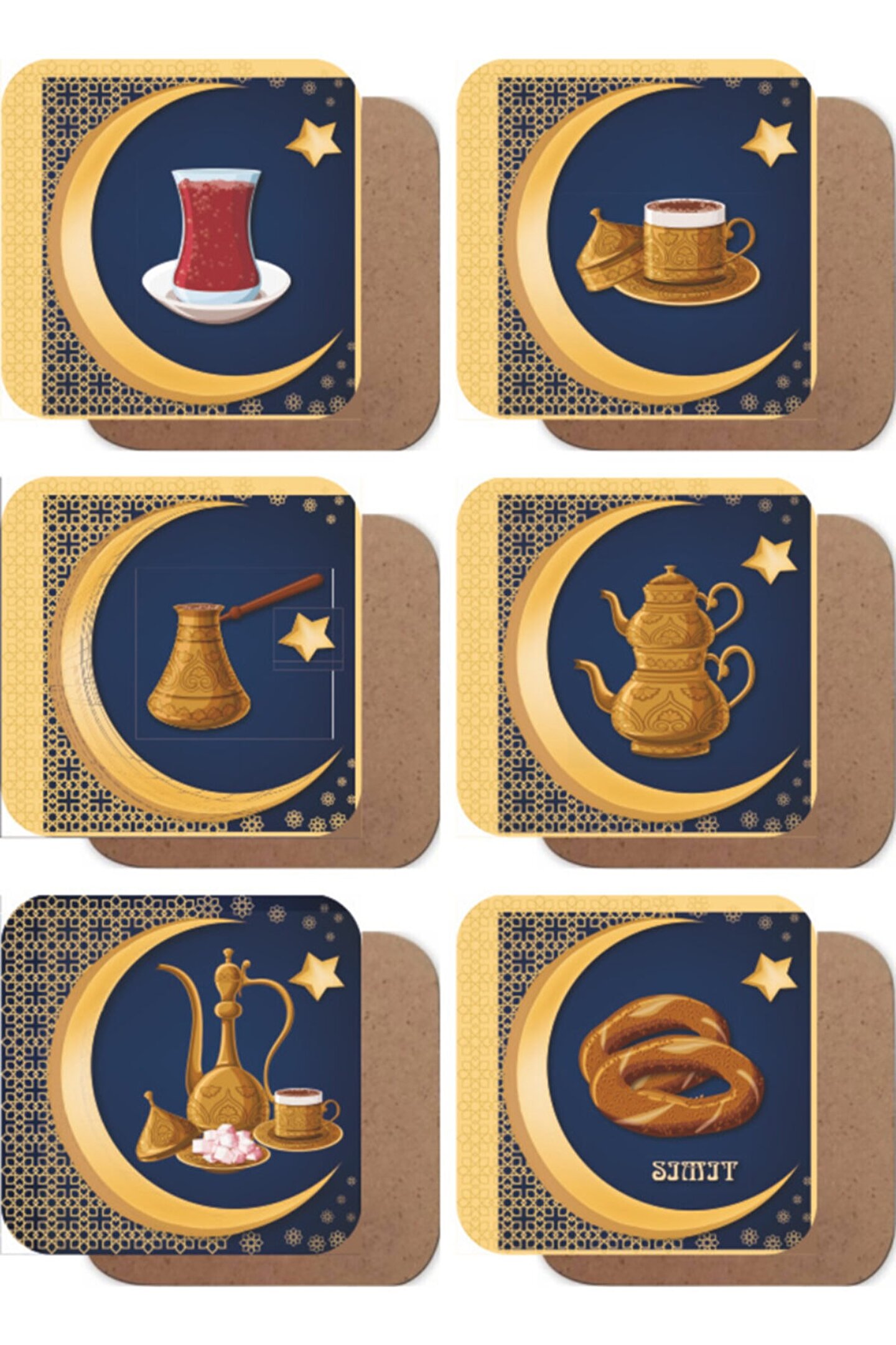 Sette 6 adet bardak altlığı bulunmaktadır, bardaklarımız MDF üzerine UV baskıdır, asla çizilmez rengi solmaz her bir bardak altlığının ebatı 9 cm x 9 cm'dir hayat poster farkıyla