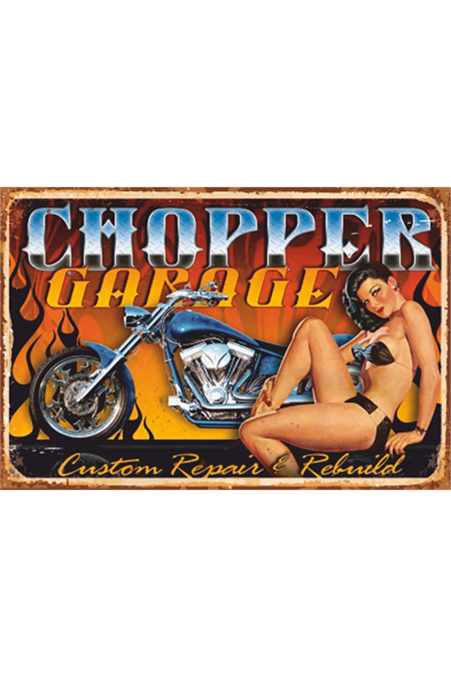 Hayat Poster Pin Up Kızı Klasik Motor Retro Ahşap Poster
