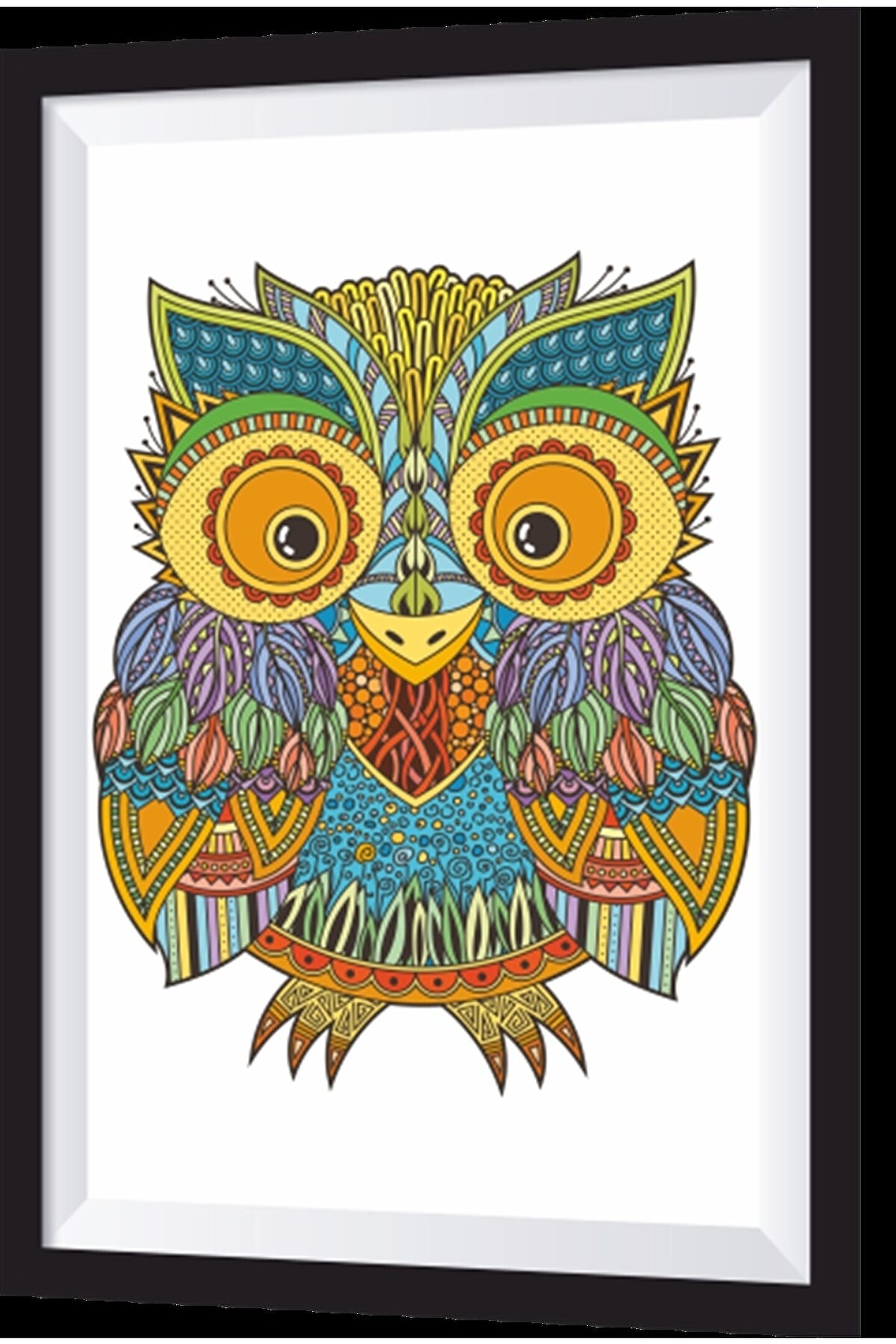 Hayat Poster Renkli Baykuş Sanatsal Çerçeve Görünümlü Ahşap Tablo