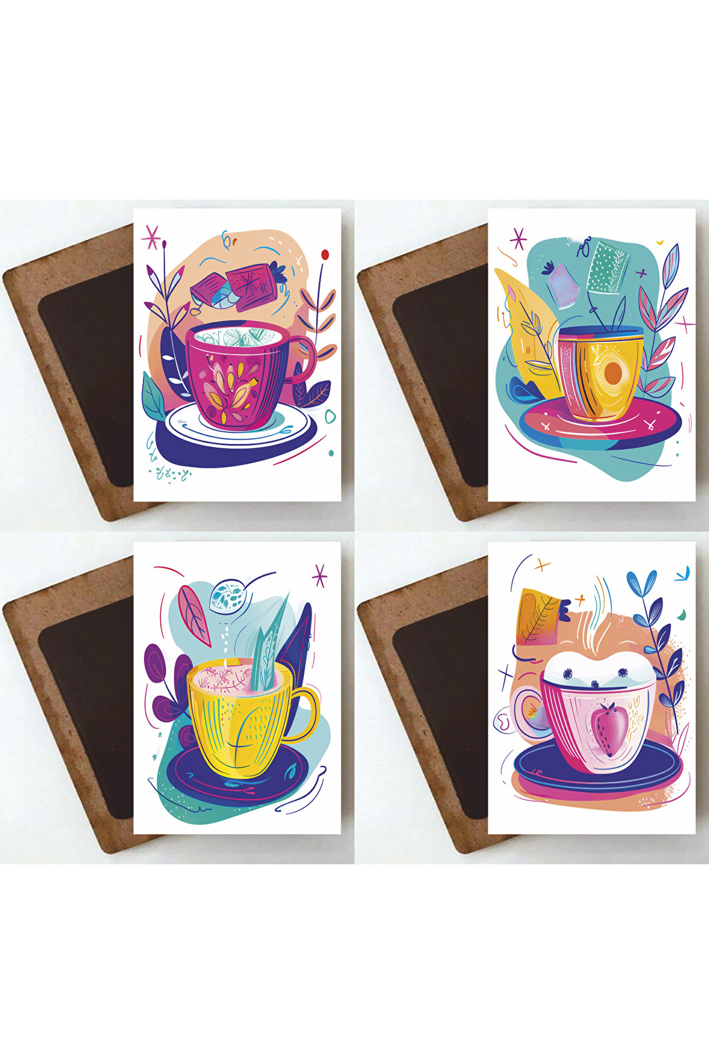Renkli çiçek desenleriyle süslenmiş, mutfak dekorasyonunuza şıklık katan 4'lü ahşap magnet seti; Buzdolabınızın kapısını açtığınızda hoş bir sürpriz yaşatacak, renkli ve canlı çiçek motifleriyle mutfağınızda neşeli bir atmosfer yaratır; Dayanıklı ahşap malzeme kullanımı sayesinde uzun ömürlü ve kaliteli bir kullanım sunar; Ev dekorasyonunuza modern bir dokunuş ekleyerek, mutfak dekorasyonunuzda fark yaratmanızı sağlar;