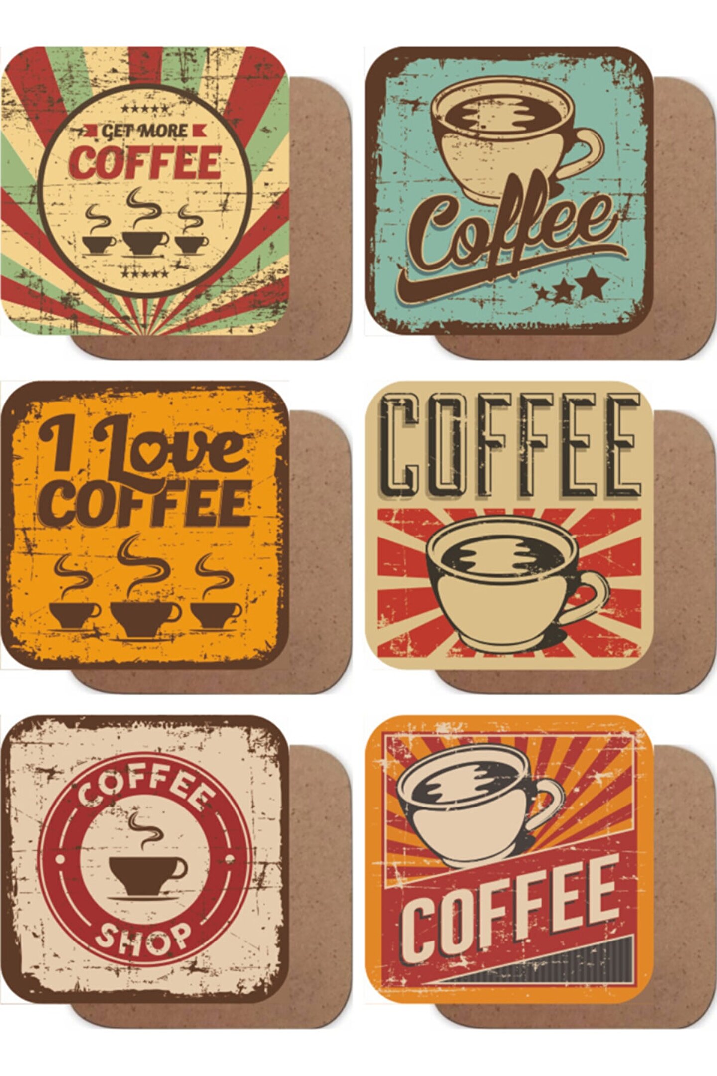 Retro tasarımıyla dikkat çeken bu 6'lı ahşap bardak altlığı seti, kahve ve çay keyfinizi tamamlayacak şık bir aksesuardır; Doğal ahşap malzemesiyle hem dayanıklı hem de estetik bir görünüm sunar, mutfak dekorasyonunuza sıcak ve otantik bir dokunuş katar; Her bir bardak altlığı, kahve veya çay fincanlarınız için ideal bir destek sağlayarak dökülmeleri önler ve masanızın temiz kalmasına yardımcı olur; Retro kahve vintage tasarımıyla modern mutfakların yanı sıra vintage dekorasyon tarzına sahip evler için de mükemmel bir seçimdir; Ahşap malzemesi sayesinde uzun ömürlü kullanım sunar ve doğal dokusuyla her türlü mutfak dekorasyonuna kolayca uyum sağlar;