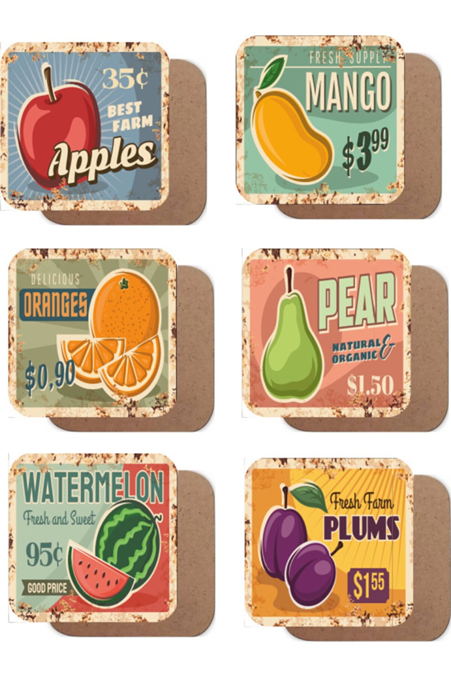 Hayat Poster Retro Meyveler 6lı Ahşap Bardak Altlığı Seti