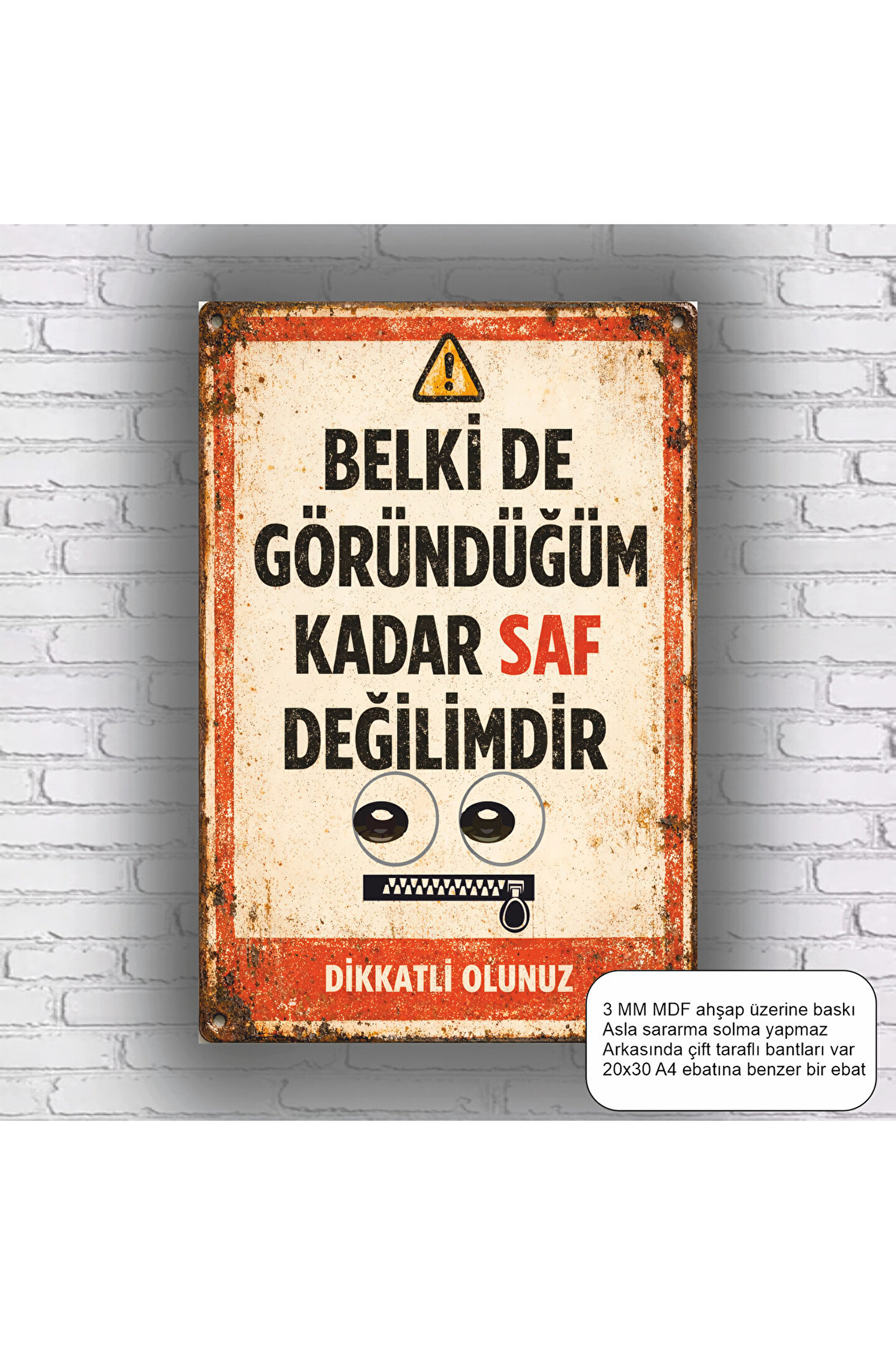 - Retro tarzıyla dikkat çeken bu MDF tablo, evinizin veya ofisinizin dekorasyonuna nostaljik bir dokunuş katıyor.; - "Saf değilim" esprili sözüyle mizah anlayışınızı yansıtan bu duvar yazısı, konuşma konusu olmaya aday.; - Türkiye'de üretilmiş olup, yerel işçiliği destekleyen bir ürün seçeneği sunuyor.; - Çerçevesiz tasarımı sayesinde, mevcut dekorasyonunuza kolayca uyum sağlayabilir ve istediğiniz çerçeveyle kişiselleştirebilirsiniz.; - Dayanıklı MDF materyali ile uzun ömürlü kullanım vaat eder ve kolay temizlenebilir özelliğiyle pratik bir tercih olur.;