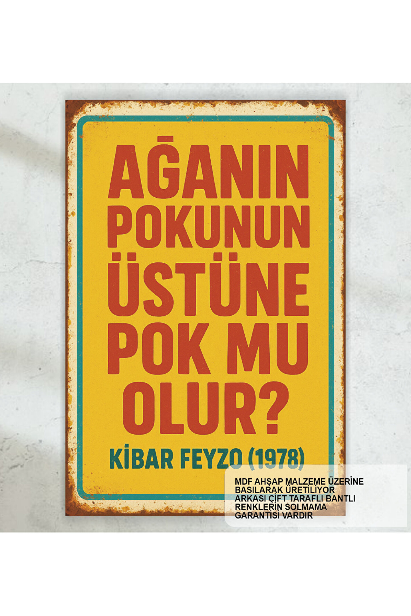 - Şener Şen ve Kemal Sunal'ın ikonik Yeşilçam repliklerini içeren bu retro ahşap poster, evinizin dekorasyonuna nostaljik bir dokunuş katıyor.; - Yüksek kaliteli MDF malzemeden üretilmiş olup, uzun ömürlü kullanım vaat ediyor.; - Tek parça halinde gelen bu poster, kolay montaj imkanı sunarak zaman kazandırıyor.; - Çerçevesiz tasarımı ile modern ve minimalist bir görünüm sağlayarak mekanınıza uyum sağlıyor.; - Türkçe olarak sunulan bu ürün, Türk sinemasının efsane isimlerinin unutulmaz repliklerini duvarlarınızda sergilemenize olanak tanıyor.