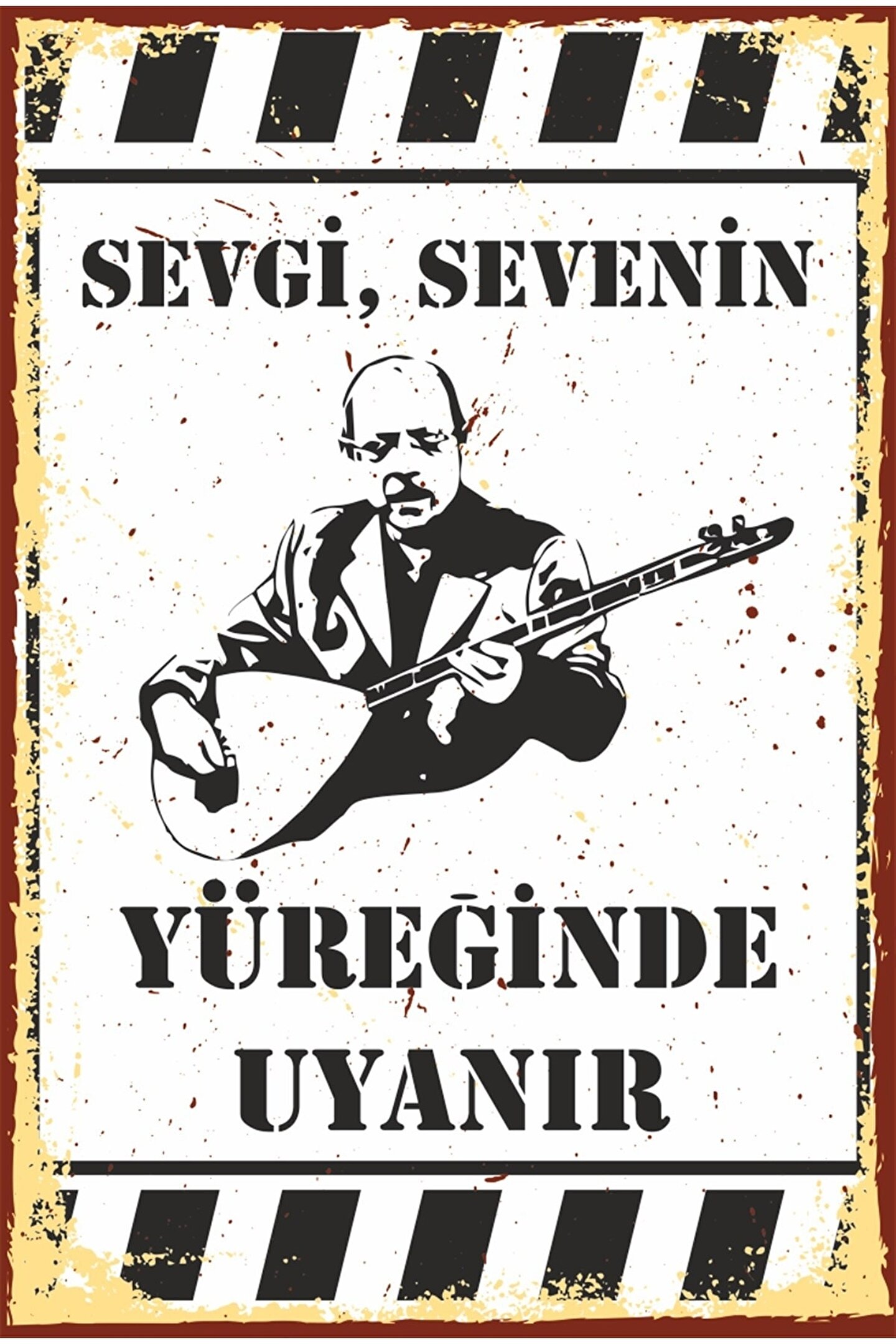 Hayat Poster Sevgi Sevenin Yüreğinde Neşet Ertaş Retro Ahşap Poster