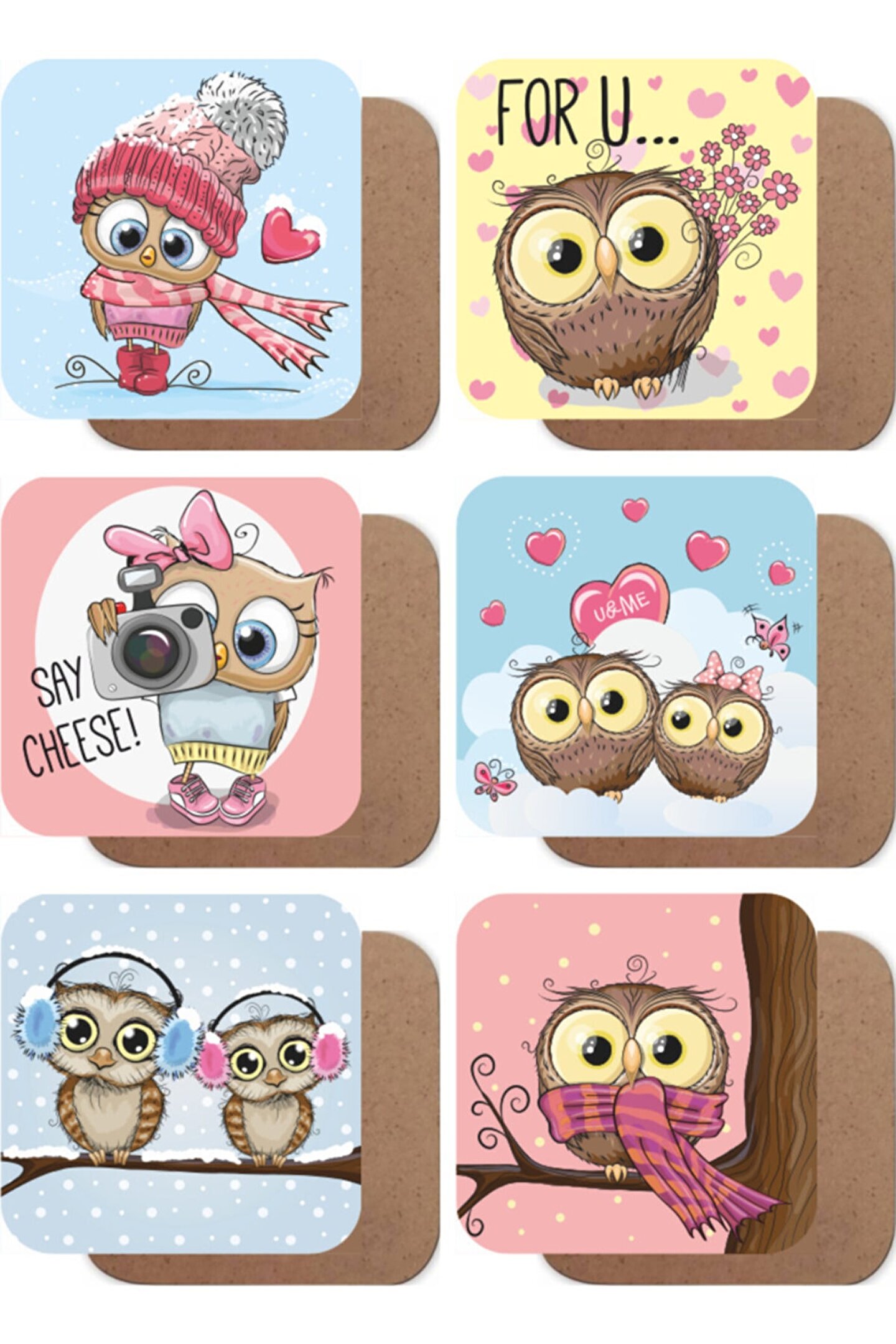 - Doğal ahşap malzemesiyle üretilmiş, dayanıklı ve uzun ömürlü kullanım sunar; - Sevimli baykuş figürleriyle süslenmiş, masanızda şık bir görünüm sağlar; - Altı adet bardak altlığı seti, birden fazla bardak için idealdir ve masa düzeninizi kolayca korumanıza yardımcı olur; - Ahşap yapısı sayesinde sıcak içeceklerinizi güvenle kullanmanızı sağlar ve masanızın çizilmesini önler;
