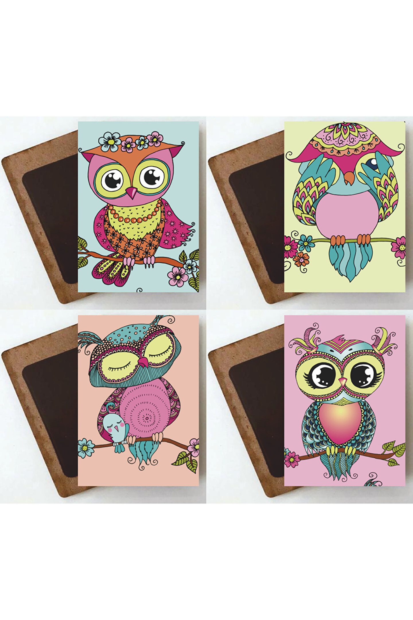 Hayvan severlerin beğenisine sunulan bu 4'lü ahşap magnet seti, buzdolabınızda sevimli bir hayvan dostu atmosfer yaratır; Baykuş temalı magnetler, doğal ahşap malzemesiyle hem dayanıklı hem de estetik bir görünüm sunar; Her bir magnet, detaylı çiçek desenleriyle süslenmiş olup, mutfak dekorasyonunuza renkli bir dokunuş katar; Bu şirin baykuş figürleri, günlük kullanımınızda size neşe ve pozitif enerji getirir;