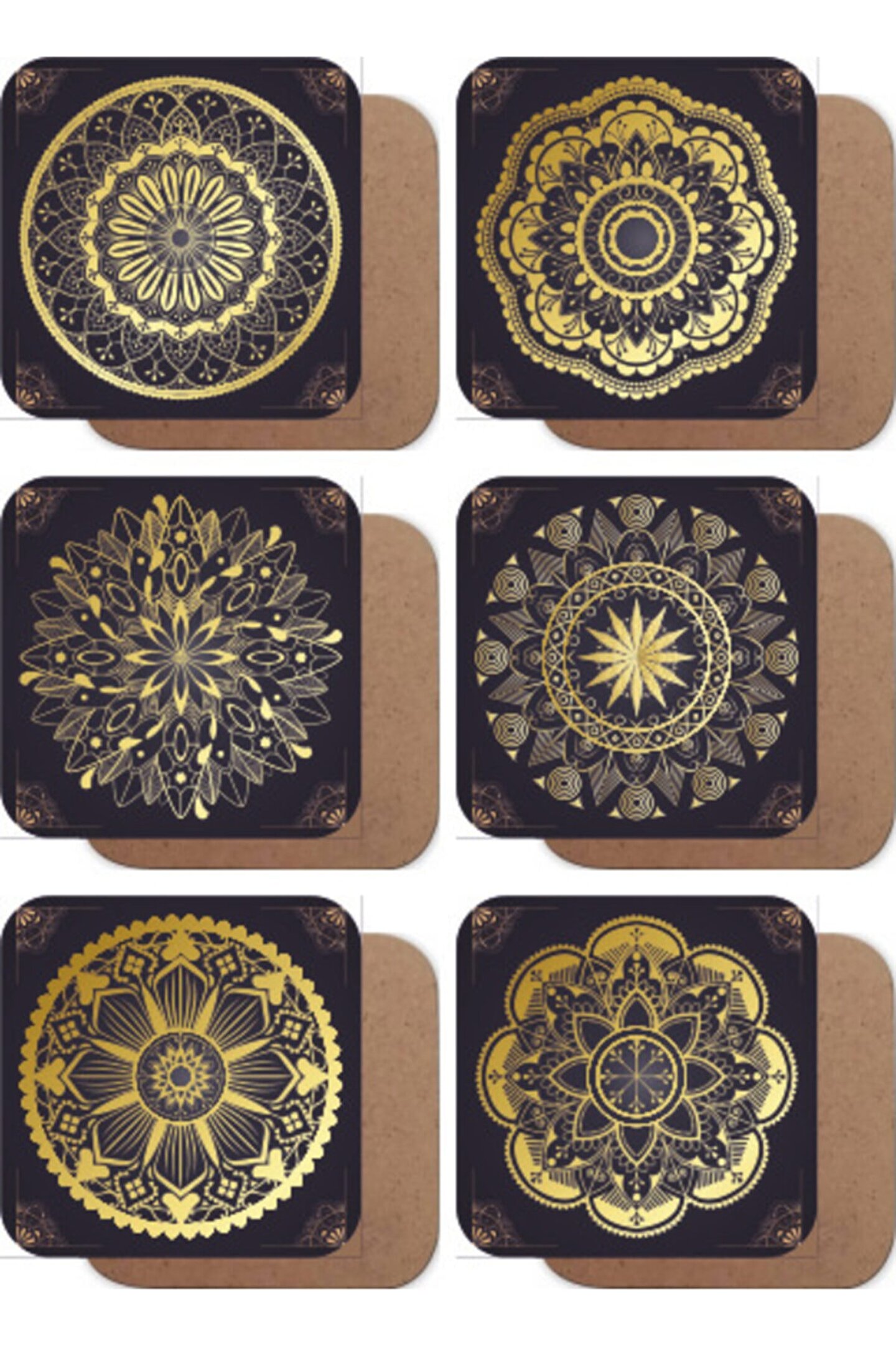 - Ahşap malzeme kullanımı sayesinde doğal ve sıcak bir dokunuş sunar; - Siyah zeminli altın renkli mandala tasarımı ile modern ve şık bir görünüm sağlar; - Altı adet bardak altlığı seti, misafirlerinize zarif bir sunum imkanı tanır; - Dayanıklı yapısı ile uzun süreli kullanım için idealdir;