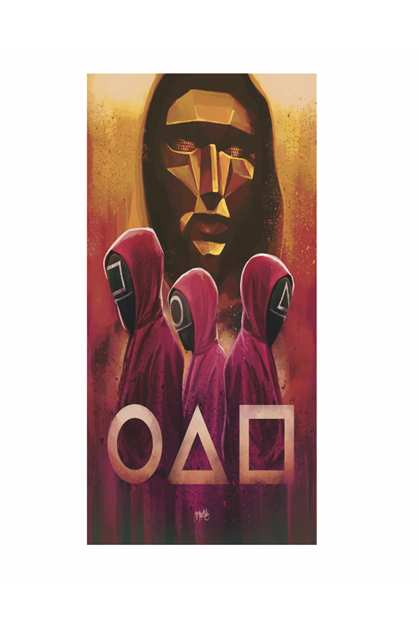 Hayat Poster squid game kore dizisi üçgen kare dikdörtgen mini retro ahşap poster