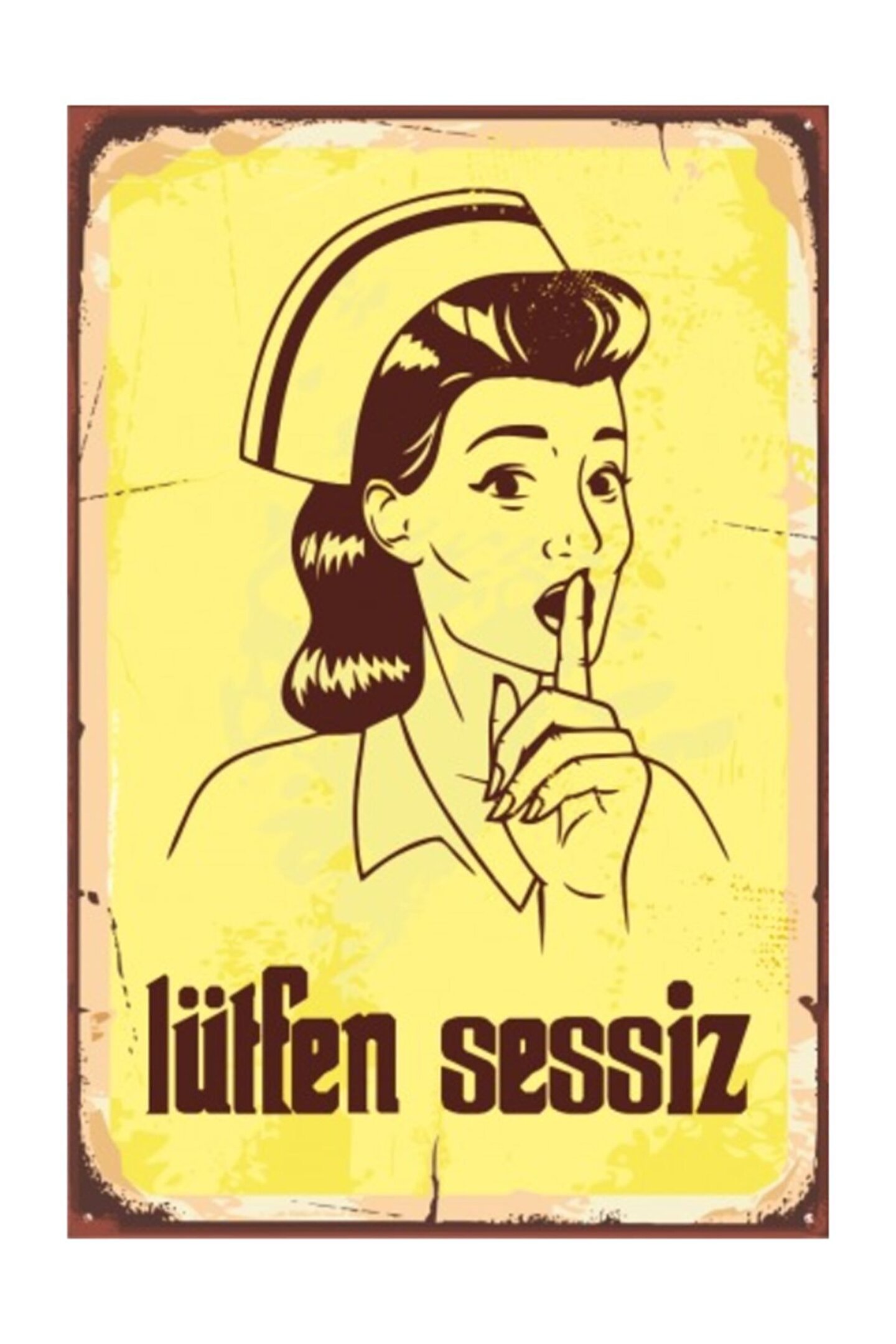 Hayat Poster Sus Yapan Hemşire Retro Vintage Ahşap Poster