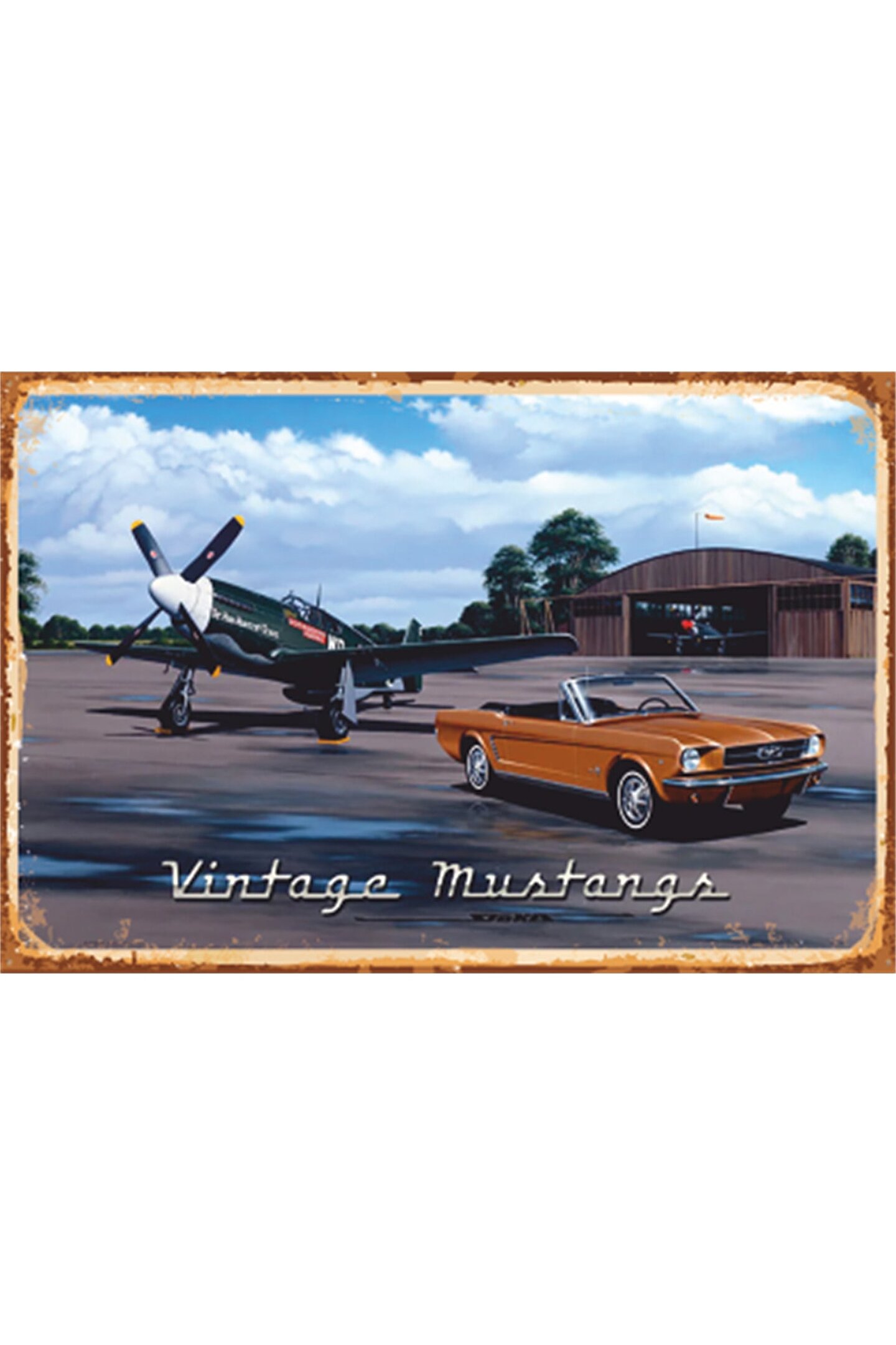 Hayat Poster Uçak Ve Klasik Spor Üstü Açık Araba Retro Ahşap Poster