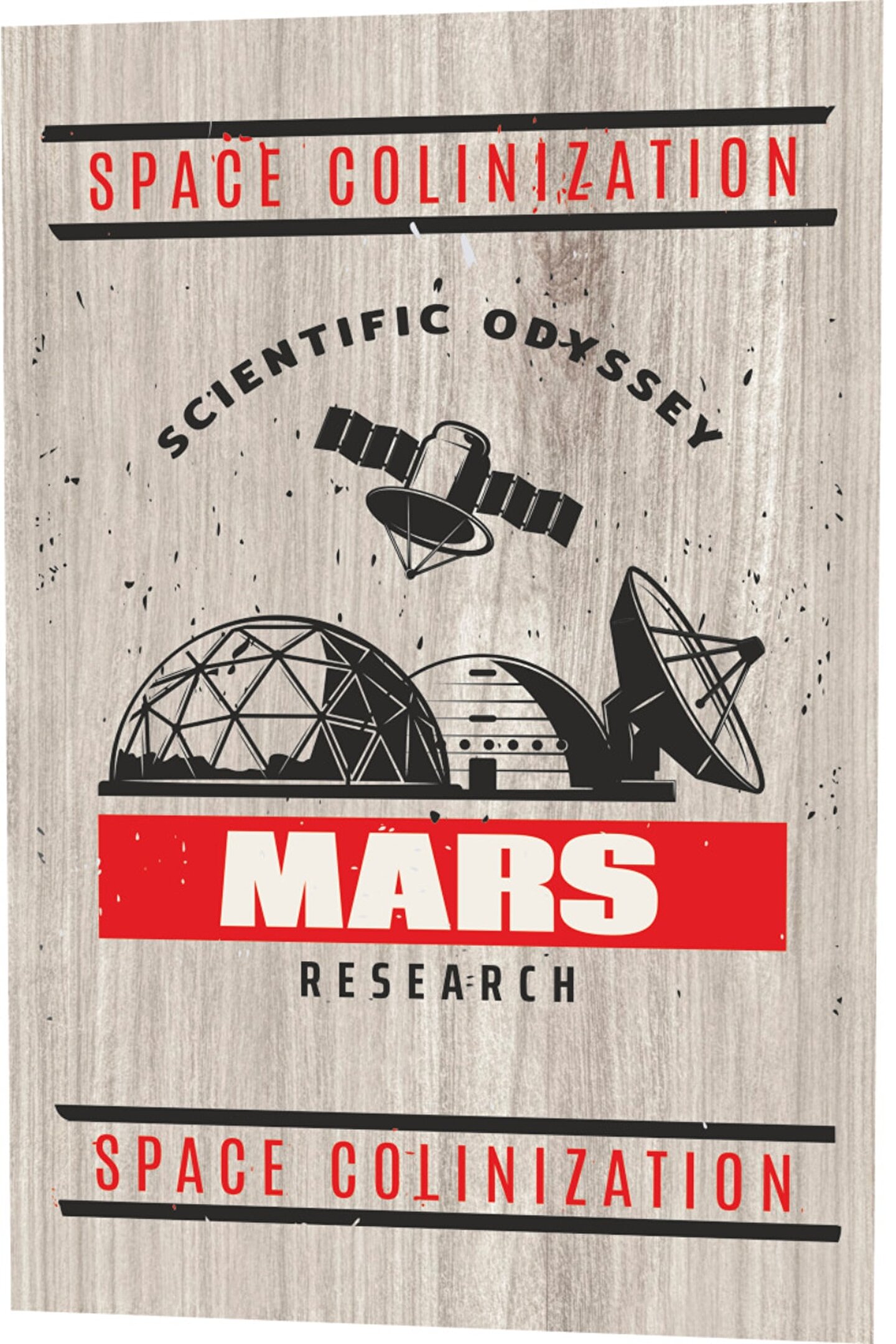 Hayat Poster Uzay Araştırmaları Mars Ahşap Desenli Retro Vintage Ahşap Poster