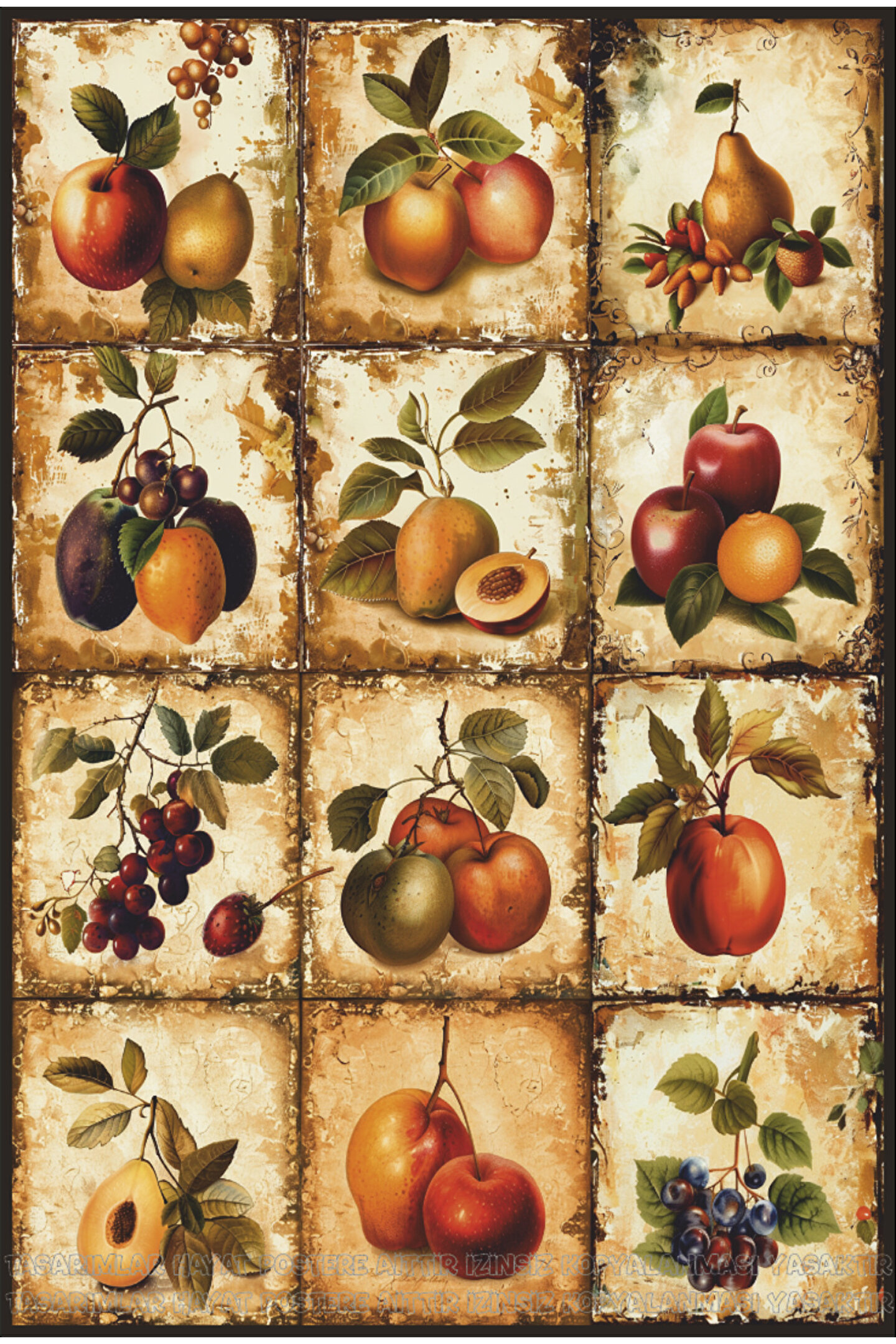 Tek parça halinde sunulan bu vintage tarzda meyve resimleri tablo, mutfak dekorasyonunuza nostaljik bir dokunuş katıyor; Doğal ahşap malzemesiyle hem dayanıklı hem de estetik bir görünüm sunar, uzun yıllar boyunca keyifle kullanabilirsiniz; Retro temalı tasarımıyla evinizin atmosferini 1950'ler ve 60'ların sıcak ve samimi havasına taşıyor;