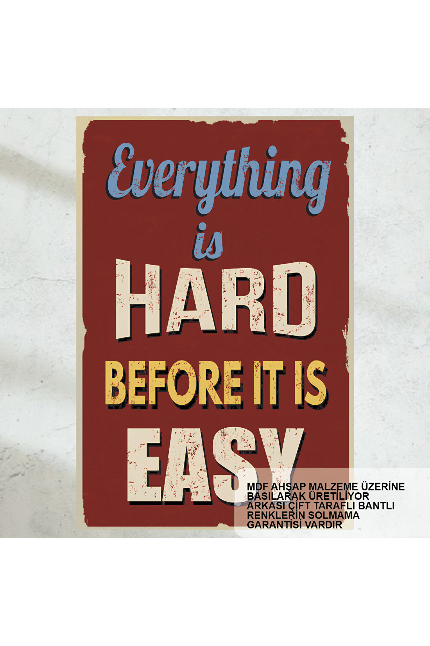 - Motivasyon ve cesaret verici sözlerle dolu, zorlukların üstesinden gelmenizi teşvik eden retro ahşap poster.; - Çerçevesiz tasarımı sayesinde istediğiniz yere kolayca asabilir veya saklayabilirsiniz.; - Türkiye'de üretilmiş olup, yerel malzemeler kullanılarak kaliteli bir deneyim sunar.; - Retro tarzıyla dikkat çeken bu poster, mekanınıza nostaljik bir hava katar.; - Dayanıklı MDF materyali ile uzun süreli kullanım vaat eder; böylece yıllar boyu ilk günkü gibi kalır.