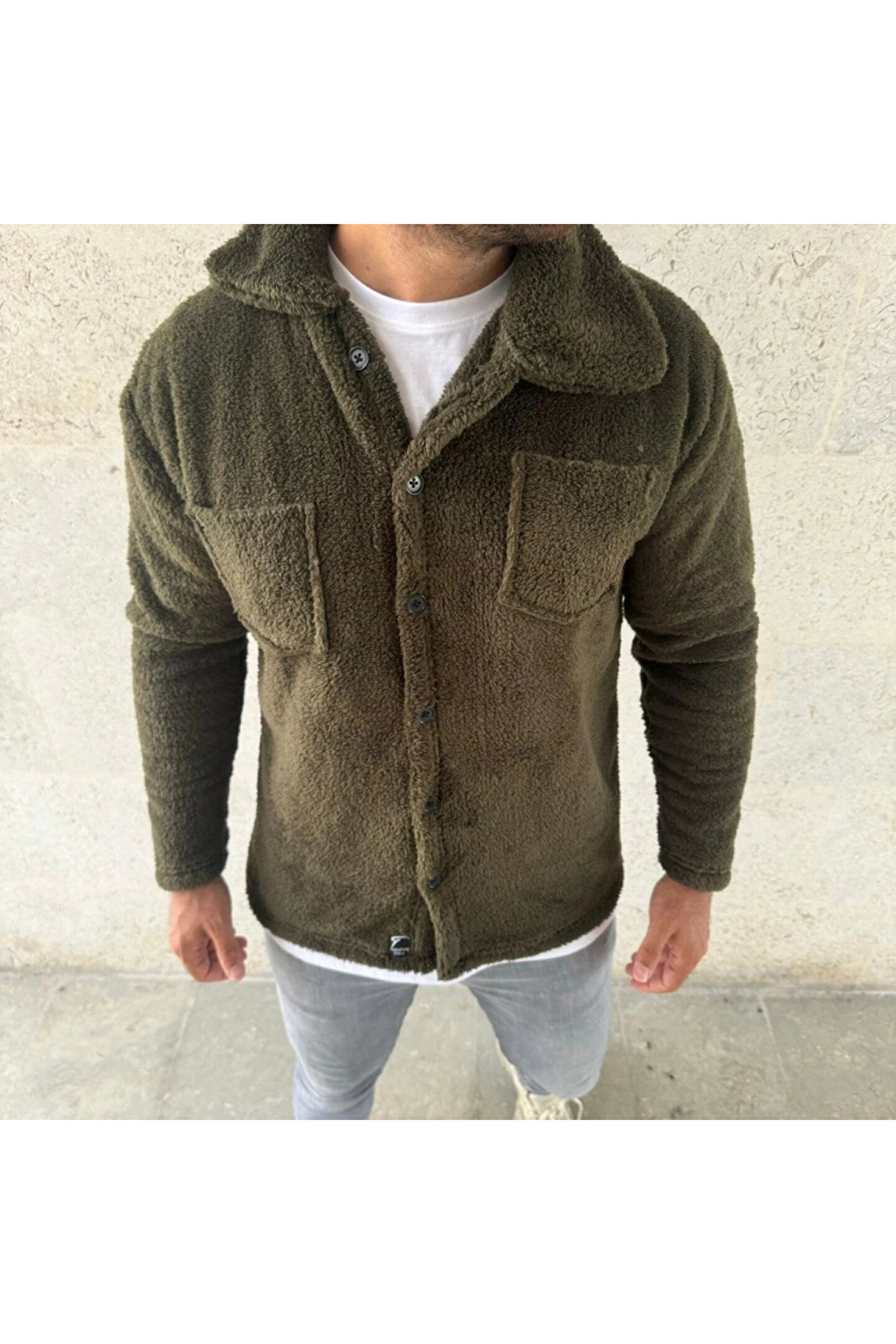 Erkek Pelüş Polar Hırka Gömlek – Yakalı, İlik Düğmeli, Göğüs Cepli, Yumuşak Dokulu Kışlık Regular Fit Rahat Günlük Model - Haki