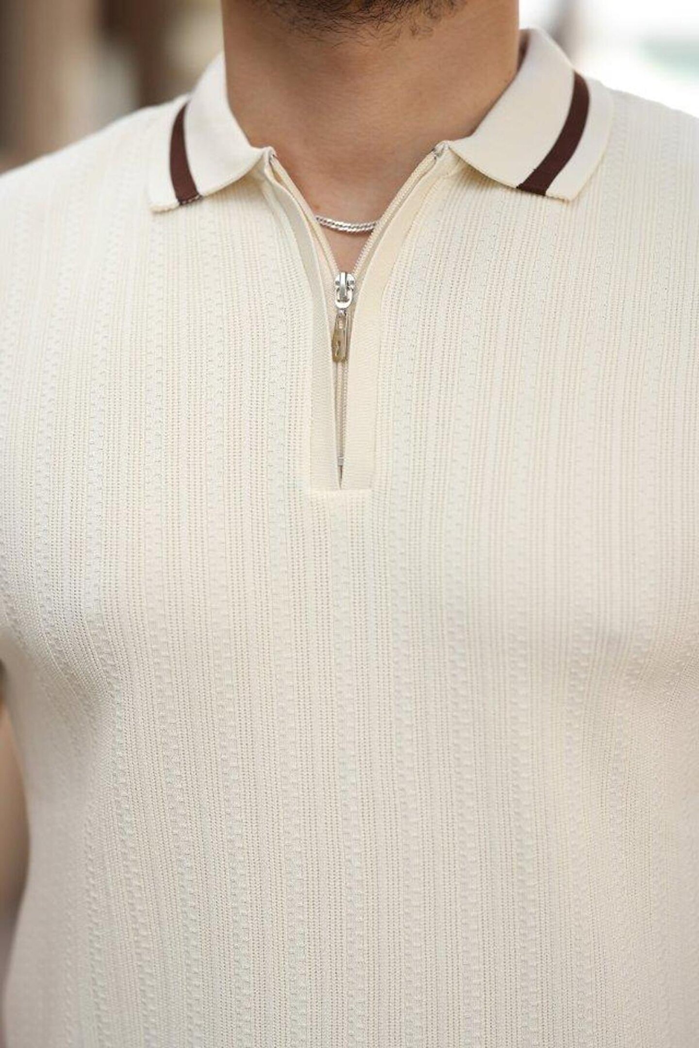 HAZEGO Erkek Yaka Ve Kolları çizgi Detaylı Fermuarlı Kısa Kollu T-shirt