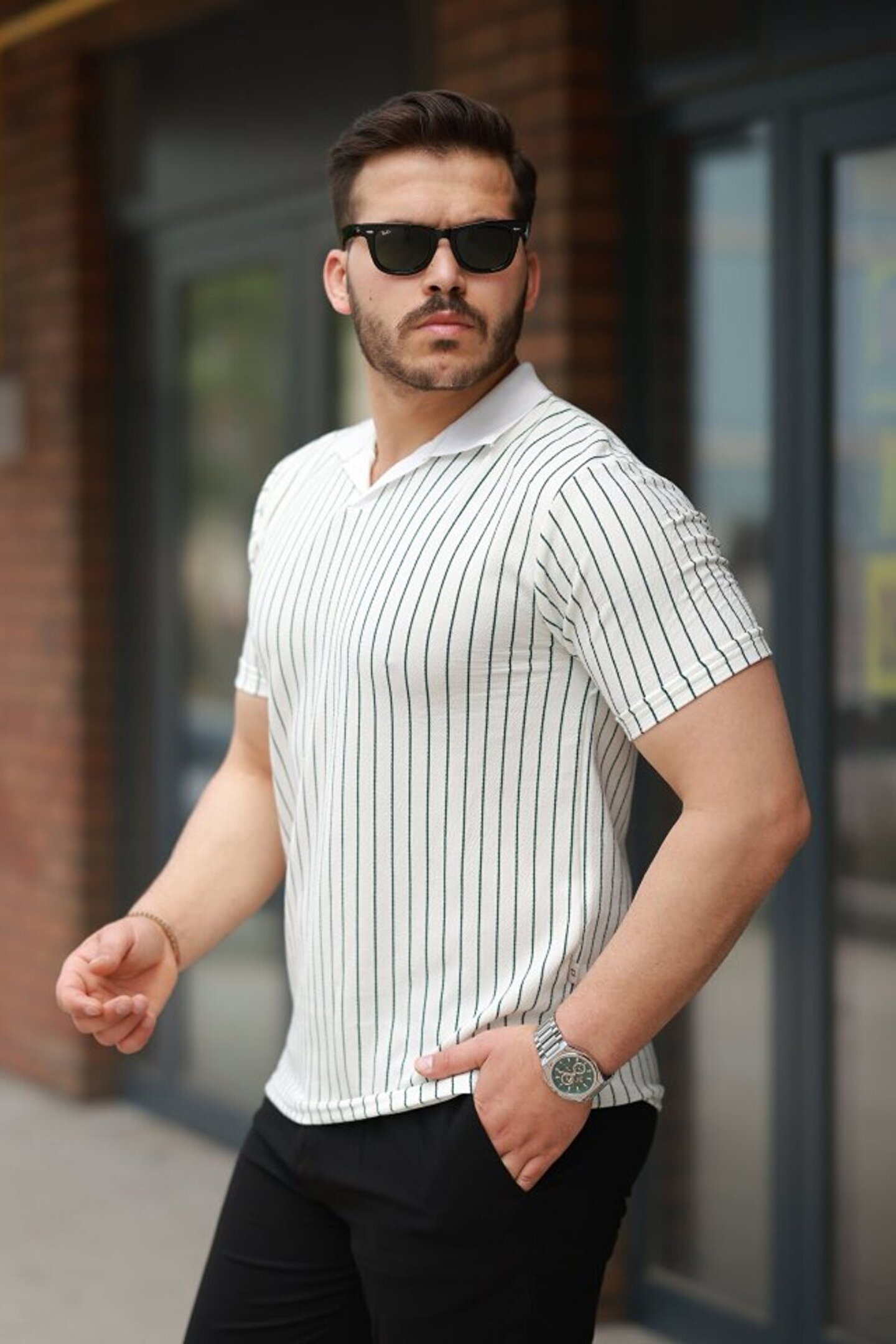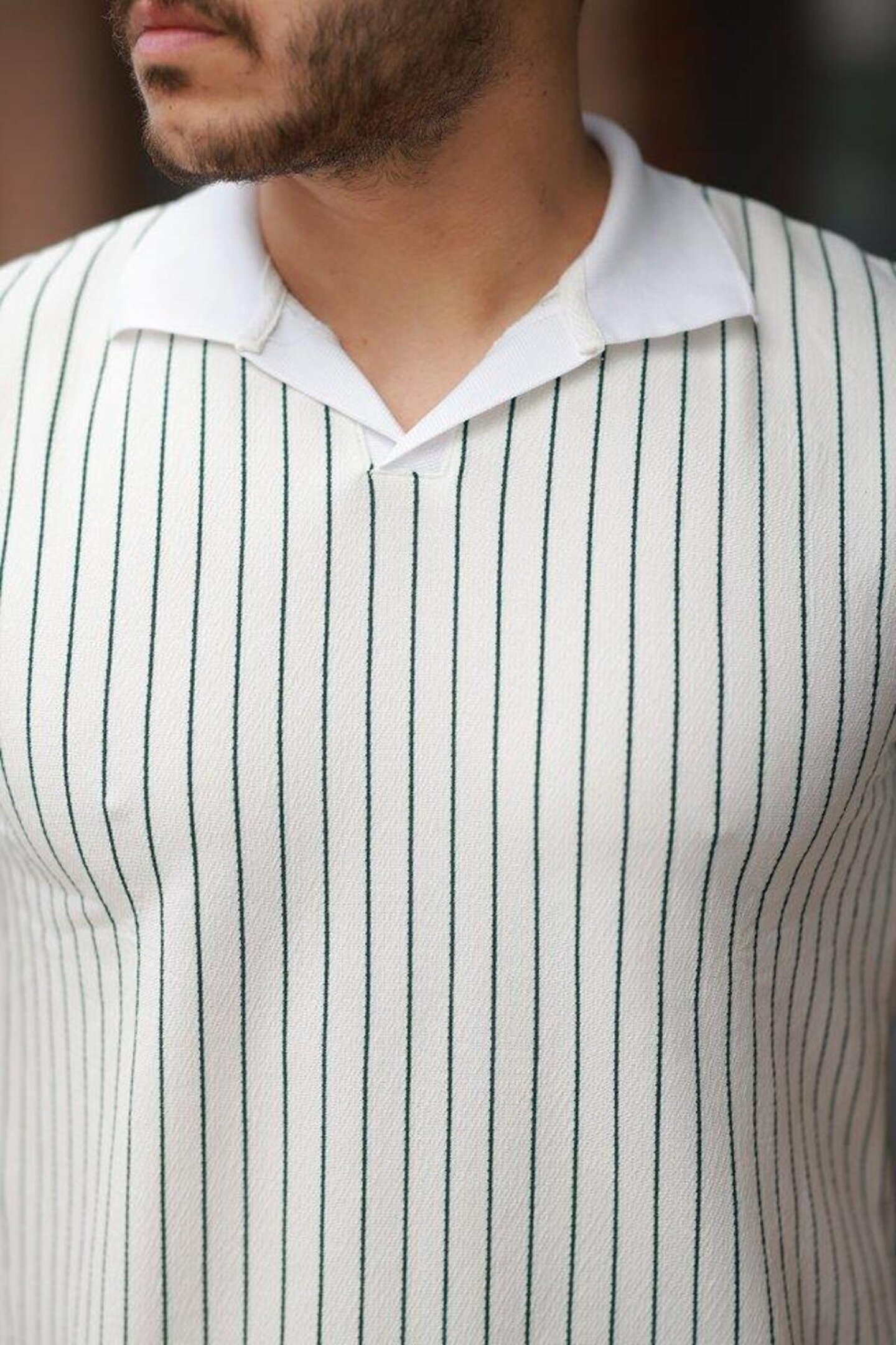 Erkek Yakalı çizgi Desenli Kısa Kollu Tişört